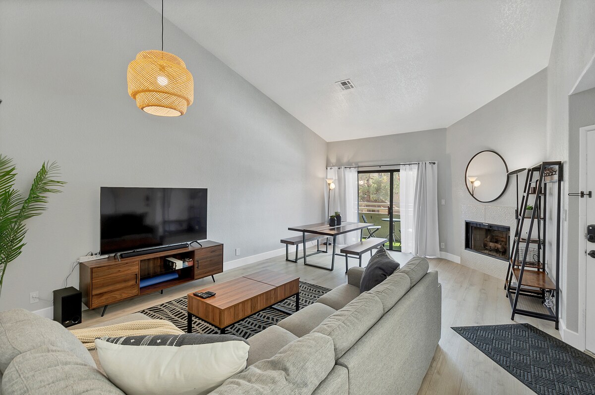 Koppla av i vår eleganta 2-bädds retreat med högt valvade tak, en 65-tums TV, spa-liknande bad och premium madrasser på en king och queen säng. Njut av två uteplatser och bekväm parkering precis framför enheten. Tillgång till utomhuspool, bubbelpool, gym och tennisbanor i en grindad miljö. Det perfekta läget placerar dig nära restauranger, shopping, vandringsleder och The Strip. Fördjupa dig i den perfekta bland modern komfort och mysig elegans. Boka nu för en oförglömlig vistelse!