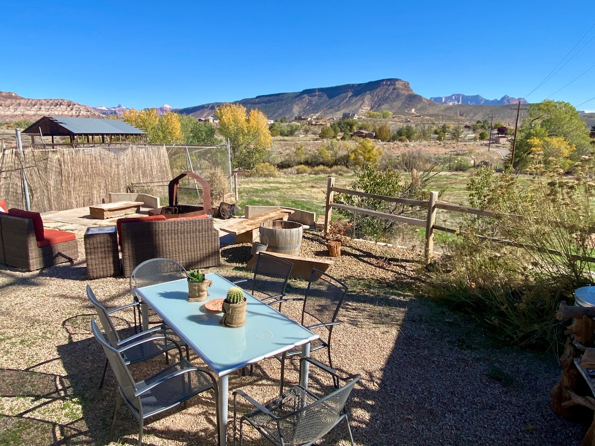 2-4 … (upp till 6 gäster! LÄS) Queen-sovrum och sovsoffa ingår Eller så kan du … 🛑 FÖR EN EXTRA AVGIFT 🛑 LÄGG TILL en 2:a ENHET NEDAN med en dubbelsäng/badrum och tvätt! Fråga om några frågor. ❌INTE lämpligt för barn ÖVER spädbarn eller UNDER 12 år.❌ Vid porten till Zion National Park, i Springdale, Utah. Mindre än 5 minuters promenad till porten. Du kan inte komma närmare, i ett PRIVAT BOENDE. En lugn bakre uteplats. GRATIS parkering, fullt utrustat kök och fantastisk utsikt. Få reseförsäkring.