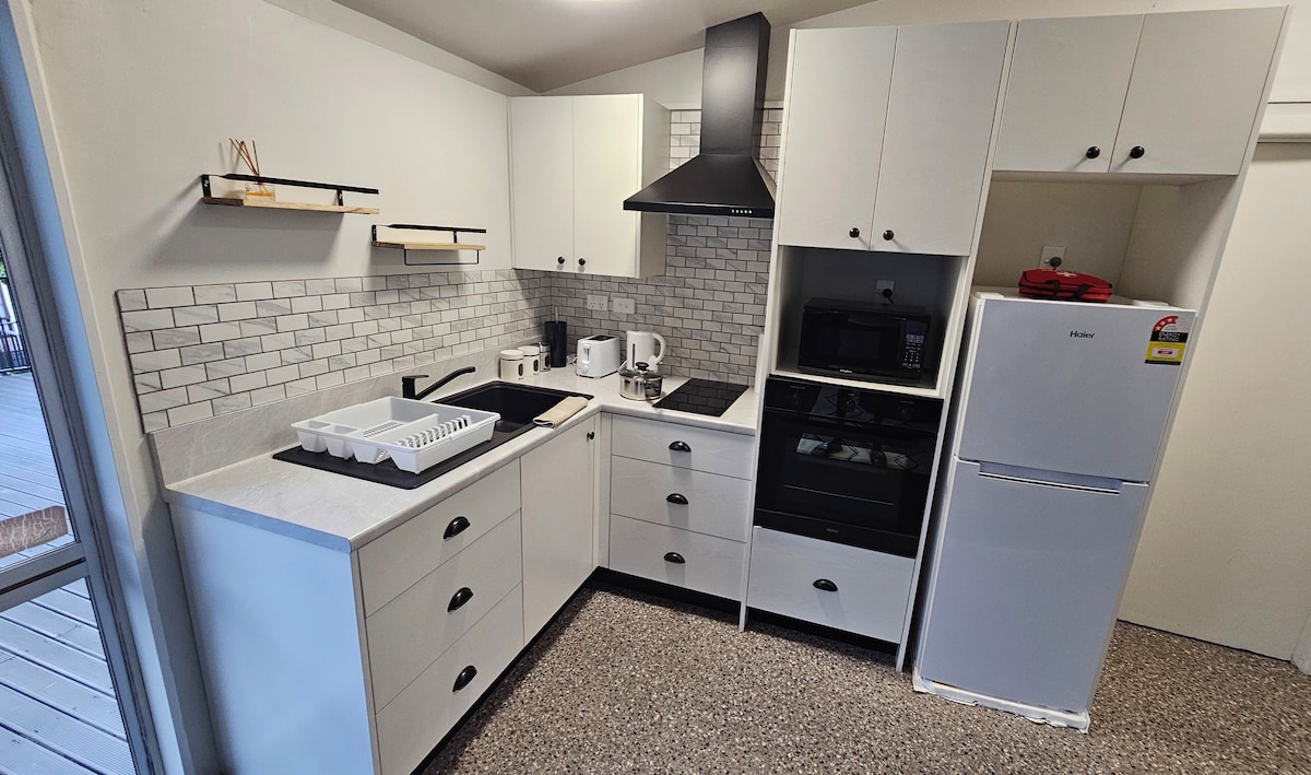 Smakfullt inrett bekvämt 1 sovrum helt fristående pensionat separat från familjehemmet. Öppen planlösning kök och vardagsrum, med ett urval av spel/pussel och böcker tillgängliga för din njutning. Huvudsovrum med king size-säng, barnsäng tillgänglig om så önskas. Ecosa bäddsoffa i loungen fälls ut till en bekväm queen-säng. Kontinental frukost tillhandahålls för att njuta med ditt morgon Nespresso-kaffe. Nära idrottsplatser, stormarknader och staden.