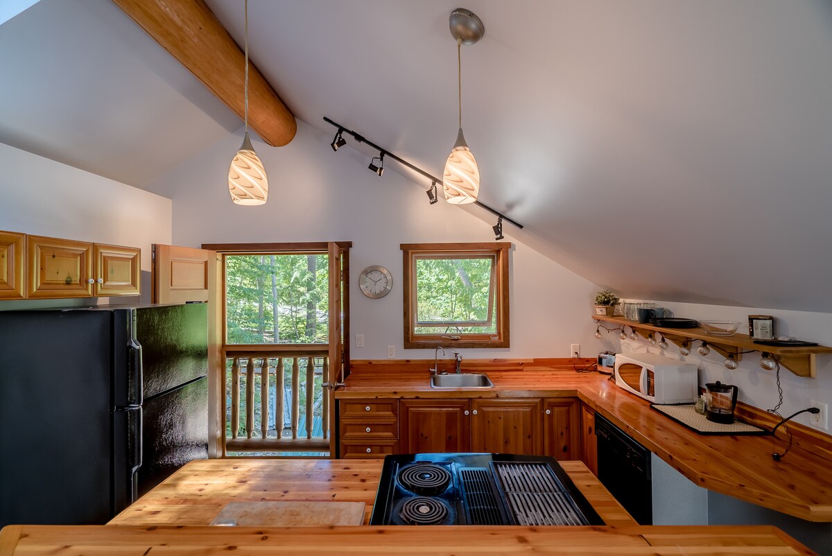 545 kvm mysig 1 sovrumsstuga (2 sovplatser) - Queen size-säng - omgiven av den stora skogen och med utsikt över havet - rikliga sängkläder - stort badkar inomhus (ingen dusch) - utomhus varm dusch (15 mars-15 okt) -separat privat bubbelpoolbyggnad (om ett annat par på fastigheten kan komma åt) - privat brygga - gratis kanoter och en paddelbräda (15 maj-1 okt) -vedspis med gratis 1:a hinken trä - stor privat uteplats - Grill - fullt utrustat kök med matplats - vardagsrum