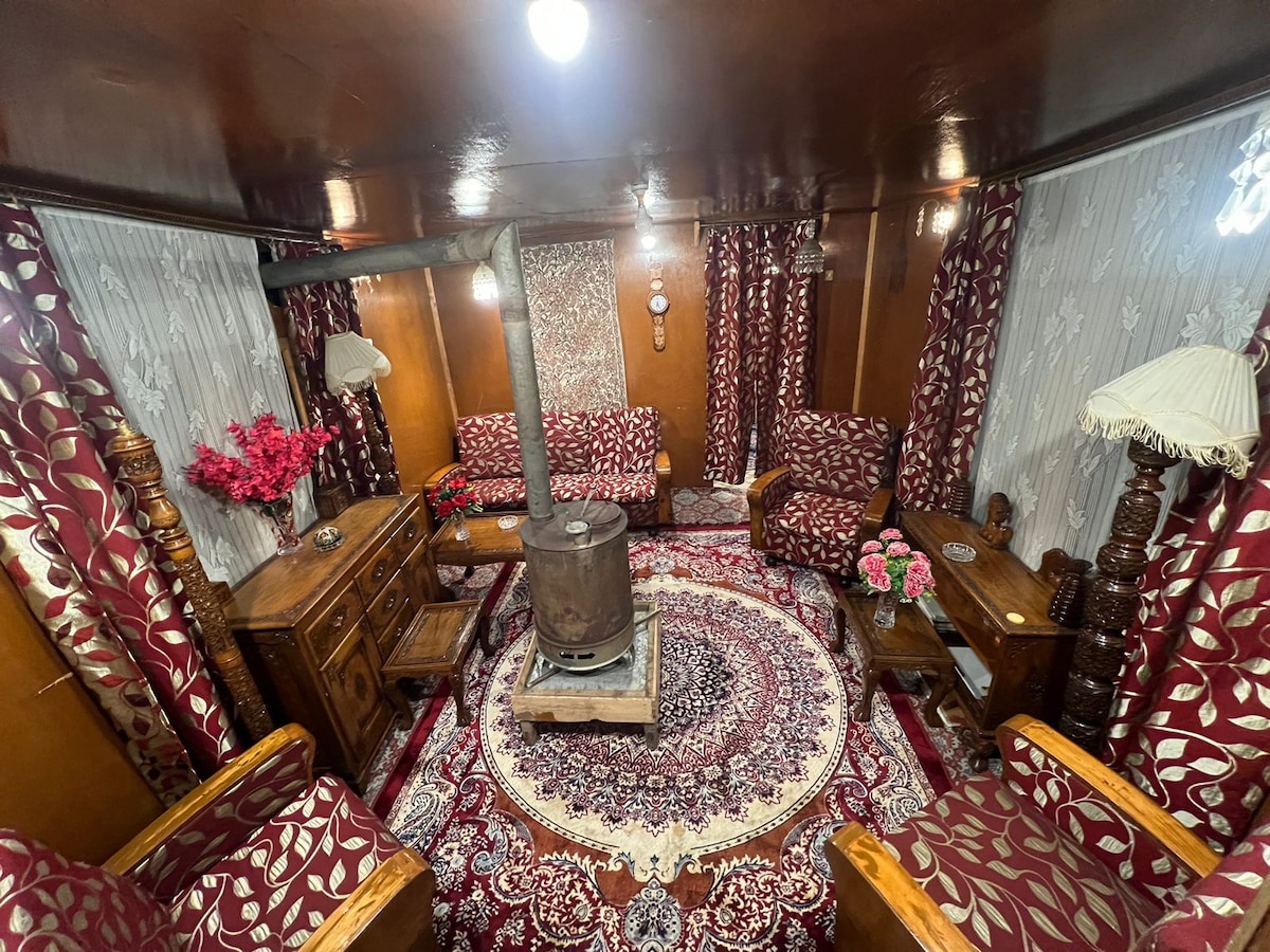 Traditionell husbåt belägen vid Dal Lake som vetter mot Zabarvan Mountains i ett lugnt område. Vi har gärna betjänat våra gäster från hela världen i 90+ år. Njut av en naturskön utsikt över lotusgårdar och vattenliljor med sevärdheter av flyttfåglar. Husbåt är gudomligt inrett med traditionella Kashmiri-möbler och möbelklädsel. Perfekt för en avkopplande gateway. Vår husbåt inkluderar obegränsat höghastighets-WiFi och bekväma sittplatser som är idealiska för WFH.