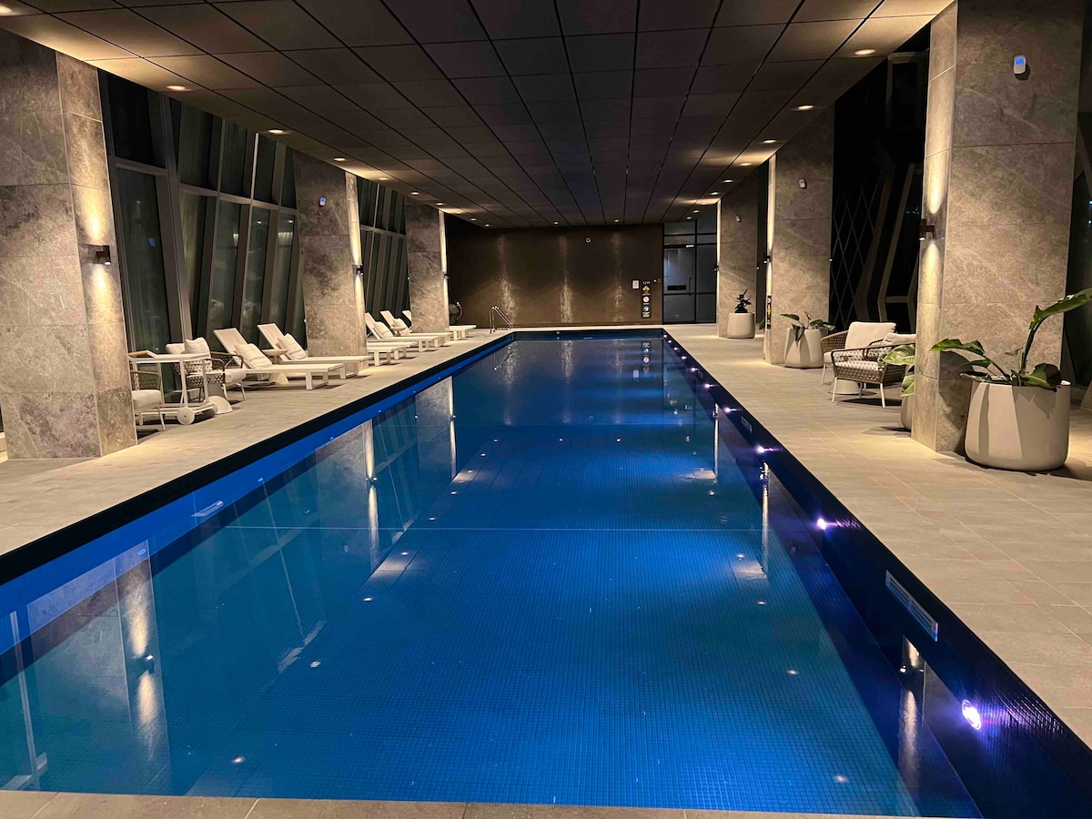 Slappna av i detta unika och lugna boende i Melbourne! Njut av en drink i vinterträdgården och njut av fantastisk utsikt över livet som går förbi på hamnen. Utmärkt för konstnären/fotografen i dig! Nära till gratis spårvagnstrafik, The District shoppingcenter inklusive gratis parkering, Marvel Stadium och Olympic Ice Skating centre. Njut av poolen och spaet under stjärnorna. Du kommer att bli mycket glad över att ha valt detta fantastiska ställe för att skapa fantastiska minnen med dem du älskar.