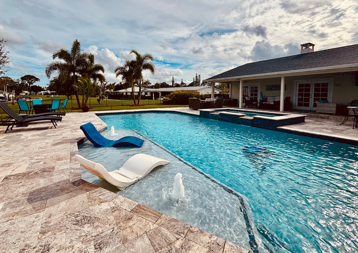 Vårt nyligen ombyggda gästrum med queen bed och fullt badrum är fristående från huvudhuset och erbjuder vår gäst den söta lugnet i ett hem hemifrån. Den nedgrävda poolen bara några meter från skjutdörrarna i glas och privat ingång på sidan av huset. Vi är bara 10 minuter bort från Jensen Beach och Hutchinson Island, gallerian, Publix, Walmart etc. Området är fullt av restauranger, att navigera till I-95 är bara 20 minuter. bilresa, West Palm är ca. 30-45 minuter!