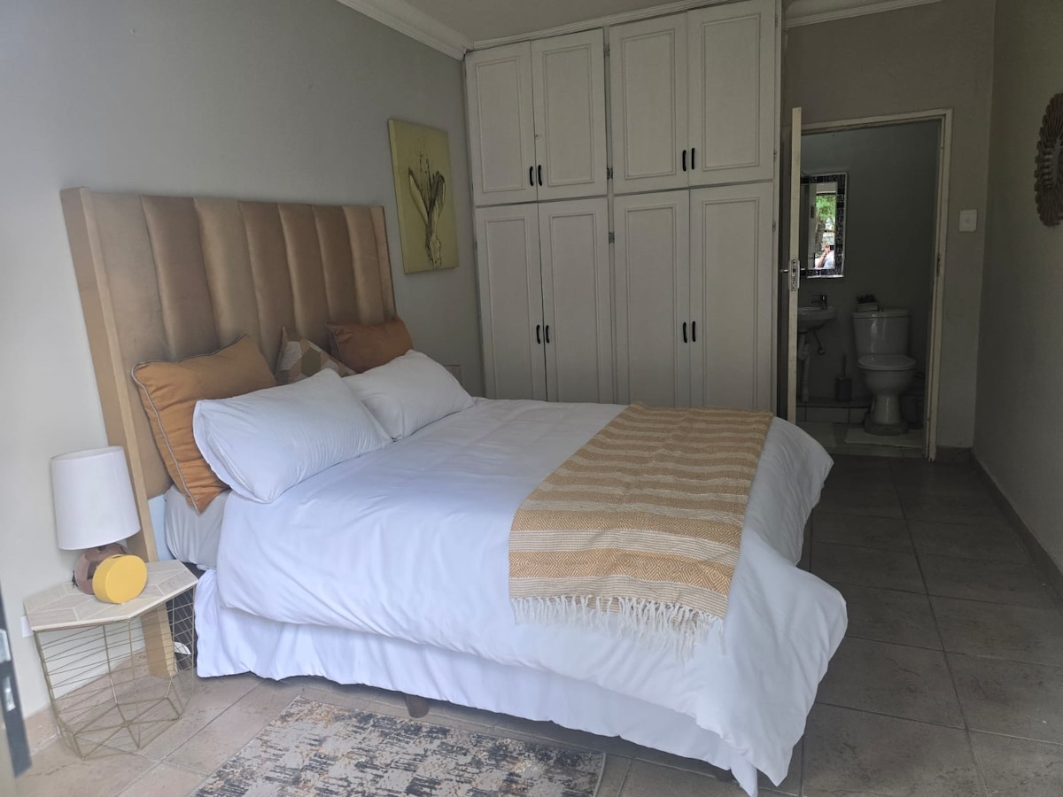 Denna luftkonditionerade alpstuga har en dubbelsäng som kan omvandlas till 2 enkelsängar, ett eget badrum med dusch, sittgrupp, pentry och matbord, en TV med DStv och en utomhus braai.