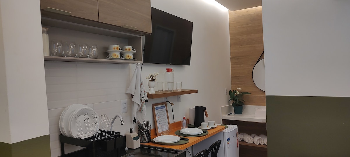 🏠 Apartamento 101 – Nytt och bekvämt Modernt och mysigt boende, perfekt för de som kommer till Belém för affärer eller nöje. 2 luftkonditionerade rum; Exklusivt badrum; Fullt utrustat kök (kylskåp, spis, mikrovågsugn och redskap); Gratis Wi-Fi. Den rymmer bekvämt 4 personer. Första uthyrningen; Rent, organiserat och förberett för att erbjuda praktiska och välbefinnande till gäster. Bekvämt läge, med enkel tillgång till stadens främsta turistattraktioner.