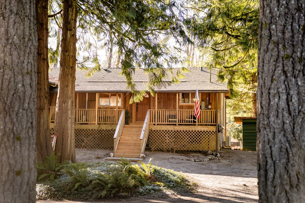 Koppla av på Riverfront Sunny Retreat River Cabin, en flykt vid floden med laxfiske, bubbelpool, spel, EV-laddare. Denna stuga med 3 sovrum/2 badrum ligger inbäddad på Cascade Loop nära North Cascades National Park, Mt Baker och Diablo Lake och blandar rustik charm med modern komfort. Njut av kvällar vid öppen spis, skogsvyer och enkel tillgång till vandring, vattenfall och djurliv. Vi har lagt ner mycket arbete på att göra det bekvämt och välkomnande – den typ av ställe du kan anlända till och omedelbart känna att du kan andas.