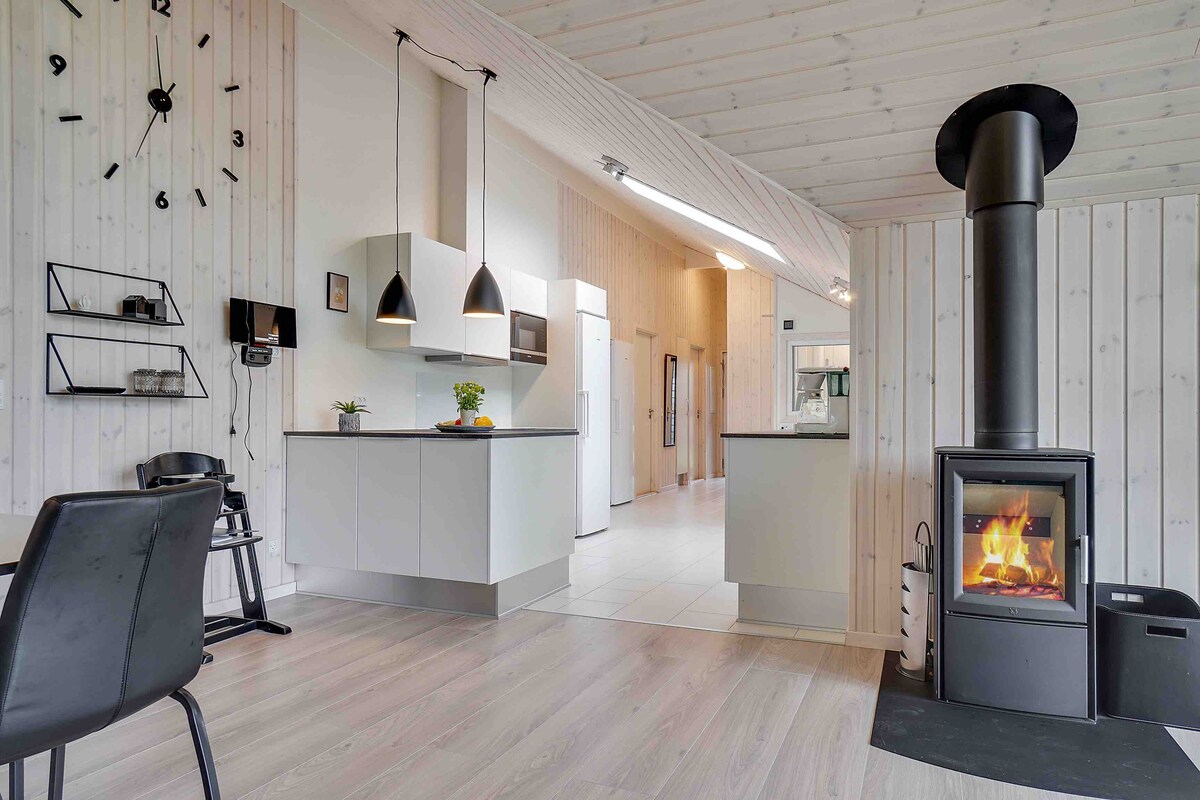 Slap af i et helt unikt, veludstyret og handicapvenligt sommerhus med højt til loftet, usædvanlige vinkler og rum med fantastisk lysindfald. Nyd roen, naturen og havets lyde helt tæt på. Udforsk den store terrasse med hyggekroge, de besøgende rådyr og direkte adgang til sandstrand 100 m fra huset. Oplev solen og den mørke "Dark Sky" himmel gennem husets teleskop og solkikkert. Brug musikinstrumenterne og lydanlæg eller tag en tur i vandet med kano, to havkajakker eller tre paddle boards (SUP).