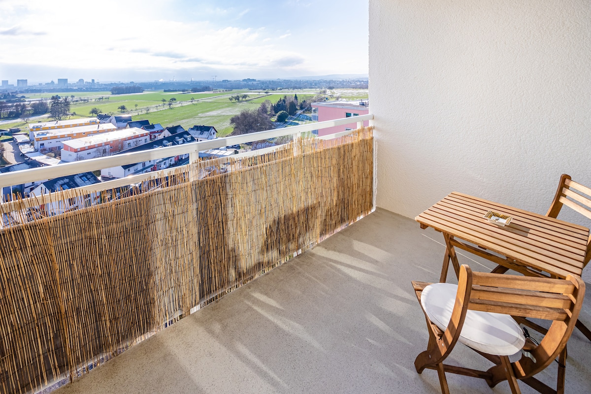 Modern 2-room vacation apartment with a stunning view of the Frankfurt skyline. The apartment features a fully equipped kitchen, a comfortable box-spring bed, ironing board, balcony, smart TV with Netflix, Alexa, and is ideal for business travelers. Just a few minutes' drive or a short train ride to Frankfurt Messe and Eschborn. Experience the comfort and beauty of our apartment!