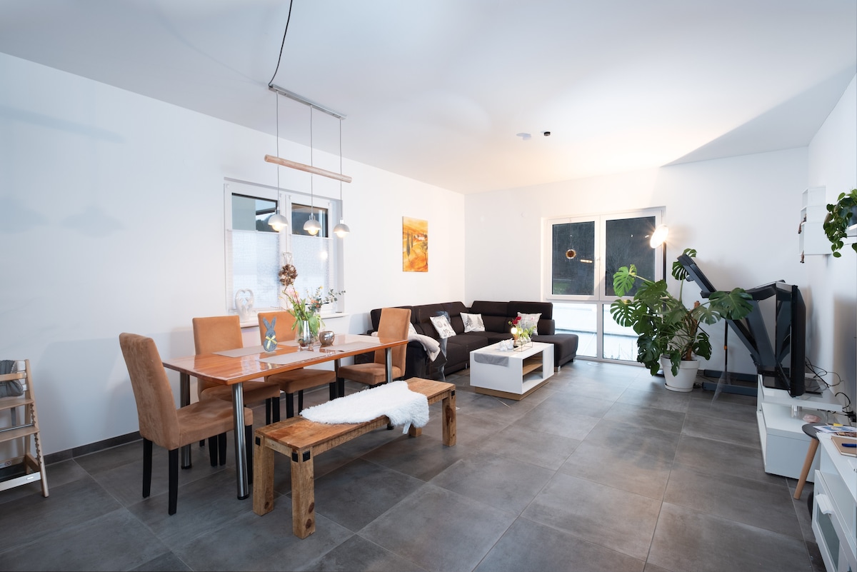 Denna 90 kvm stora lägenhet för fyra personer är det perfekta semester- eller övergångsboendet. Den är perfekt för en oförglömlig semester och perfekt för affärsresenärer, pendlare och montörer. Det ljusöversvämmade boendet är bekvämt beläget, bara 4 km från motorväg A8. Lägenheten har ett stort vardagsrum och matplats, 2 sovrum, 2 badrum, ett fullt utrustat kök och en mysig balkong.