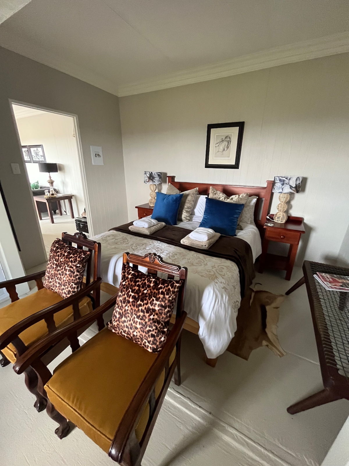 Fly till denna avskilda tillflyktsort som drivs av solenergi och är omgiven av frodig grönska. Koppla av vid den delade poolen, njut av en biljard på uteplatsen eller använd braai för utomhusmåltider. Det öppna köket har en gasspis och vardagsrummet erbjuder mysiga sittplatser och en smart-TV med höghastighets-WiFi. Med eleganta sovrum och moderna badrum är denna miljövänliga tillflyktsort perfekt för par eller distansarbetare som söker lugn och moderna bekvämligheter i en lugn och elegant miljö.