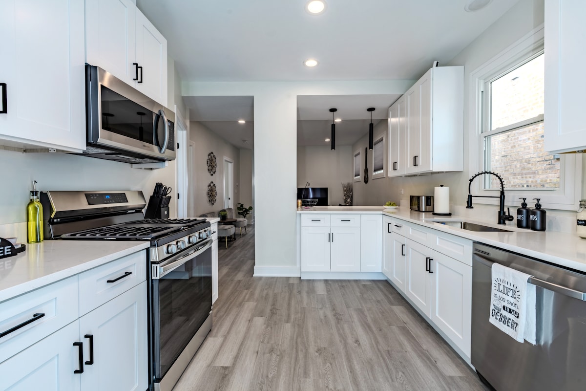 Enjoy a fully renovated first-floor 2-bedroom apartment on a peaceful, tree-lined street. Clean, modern, and designed for comfort and tranquility. Steps from dining and shopping, with easy access to the Metra, CTA Pink Line, and direct bus to Midway. Downtown Chicago is 20 minutes away; the United Center and Soldier Field just 15 minutes. A stylish, private retreat combining luxury, comfort, and convenience.