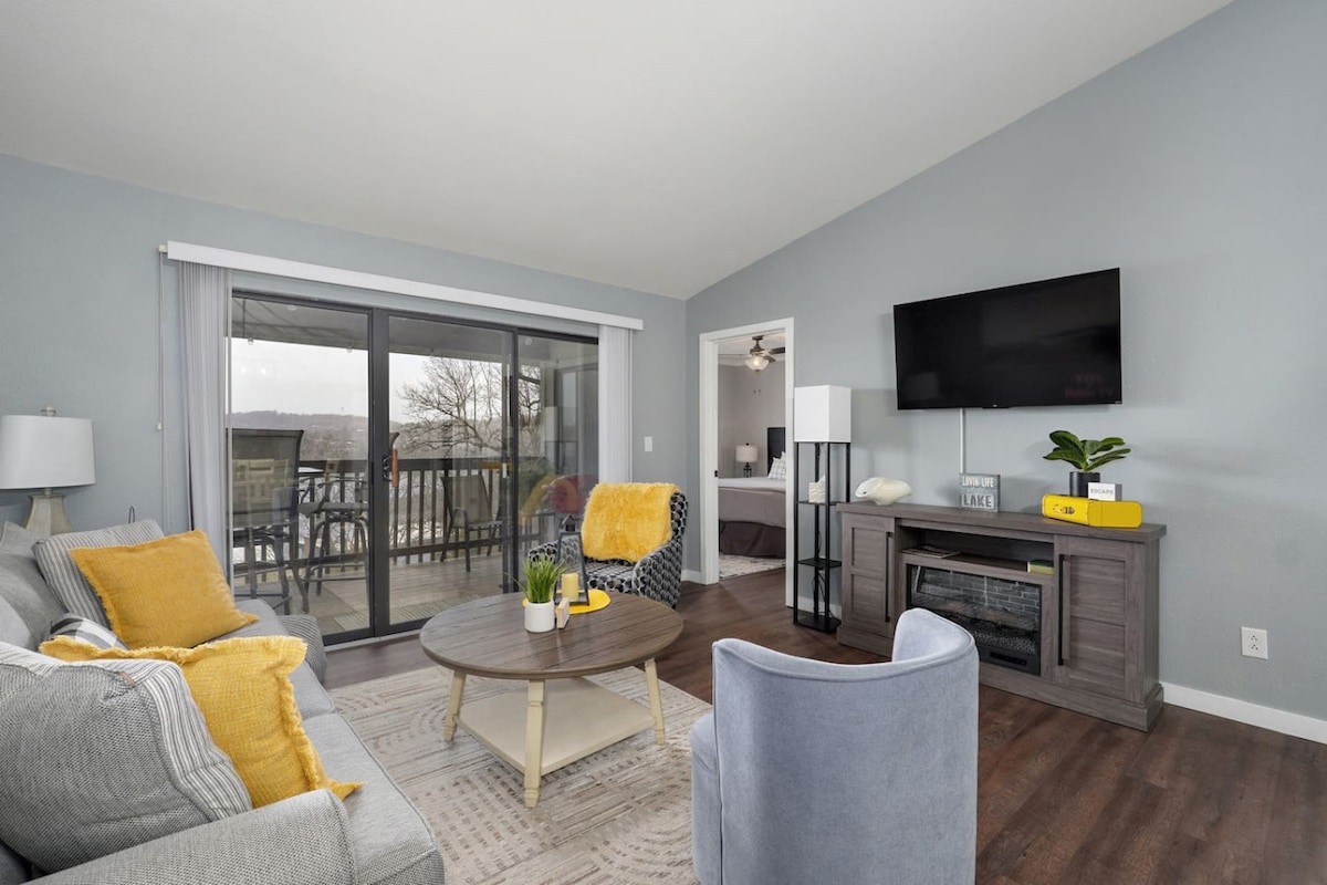 Välkommen till Rolling Hills Condo — Din flykt till lugn och avkoppling! Denna rymliga takvåning med 2 sovrum i Indian Point erbjuder fantastisk utsikt över Table Rock Lake. Belägen i ett lugnt samhälle, bara några minuter från Bransons bästa attraktioner, kombinerar denna lägenhet komfort och bekvämlighet — enkel tillgång till all spänning, med möjlighet att koppla av i en lugn miljö. Denna lägenhet har en king, queen, två våningssängar och en utdragbar soffa för gott om utrymme. Perfekt för familjer eller vänner!