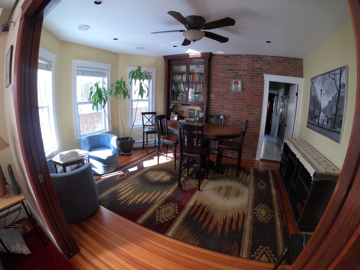 Ett rent, soligt och rymligt boende med moderna bekvämligheter. Beläget inom en kort promenad från T som tar dig var som helst i Cambridge, Brookline och Boston. 5 minuters promenad till Tufts University. **Uppdaterad 25/2/25** Vi började som värdar när AirBnB först lanserades och bilderna är från en professionell fotograf AirBnB som erbjuds som ett kompletterande incitament för att ta med fler värdar ombord. Det enda som har förändrats sedan dess är att vi hade tvillingar, och det finns mindre bevis på det i hela huset.