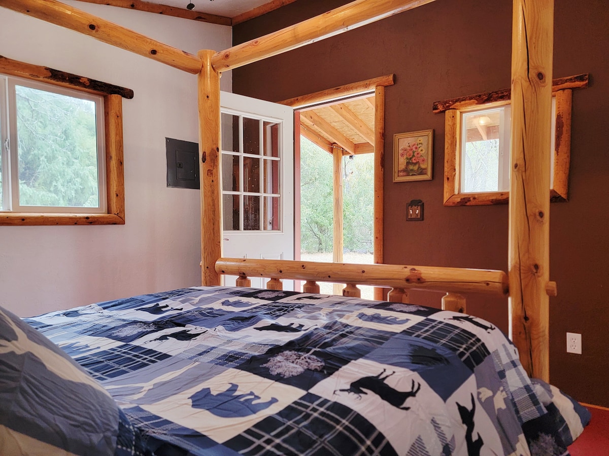 En bekväm liten stuga som är perfekt för ett par eller en liten familj. Den är inbäddad för lite lugn och ro. Stugan rymmer 6, men är mer gynnsam för 5 eller mindre. 6 kommer att fungera om du har små barn. Om du har större personer, kolla in The Restin' som ligger precis uppe på kullen. Du kan vandra runt stugan eller gå någonstans mer offentligt såsom de spanska topparna, norra sjön eller över till Cuchara. Stugan har en queen-säng, 4 enkelsängar, tvättmaskin och torktumlare, 2 däck, en smart-TV och WiFi.