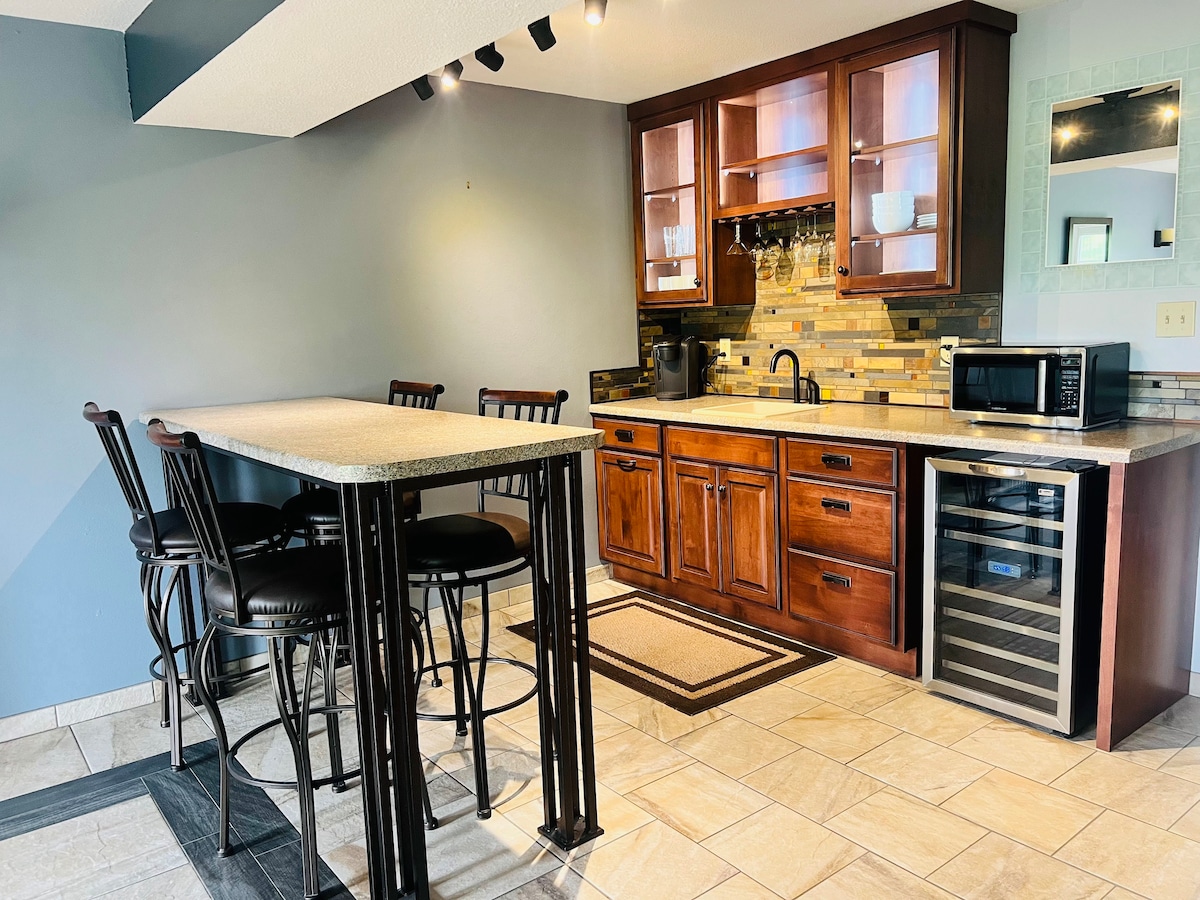 Välkommen till vår charmiga gästsvit med privat tillgång och parkering, perfekt för en avkopplande semester. Detta unika utrymme erbjuder en bubbelpool med fullständig avskildhet (omgiven av ett 6-fots staket), en LED makeup-spegel med en defogger, en tvättmaskin och torktumlare i full storlek och en privat uteplats. Njut av omtänksamma detaljer och unika detaljer i hela boendet. Beläget nära alla West Rapid kaféer och restauranger, är det också en kort bilresa till stora turistmål. Boka nu och njut av en unik tillflyktsort!