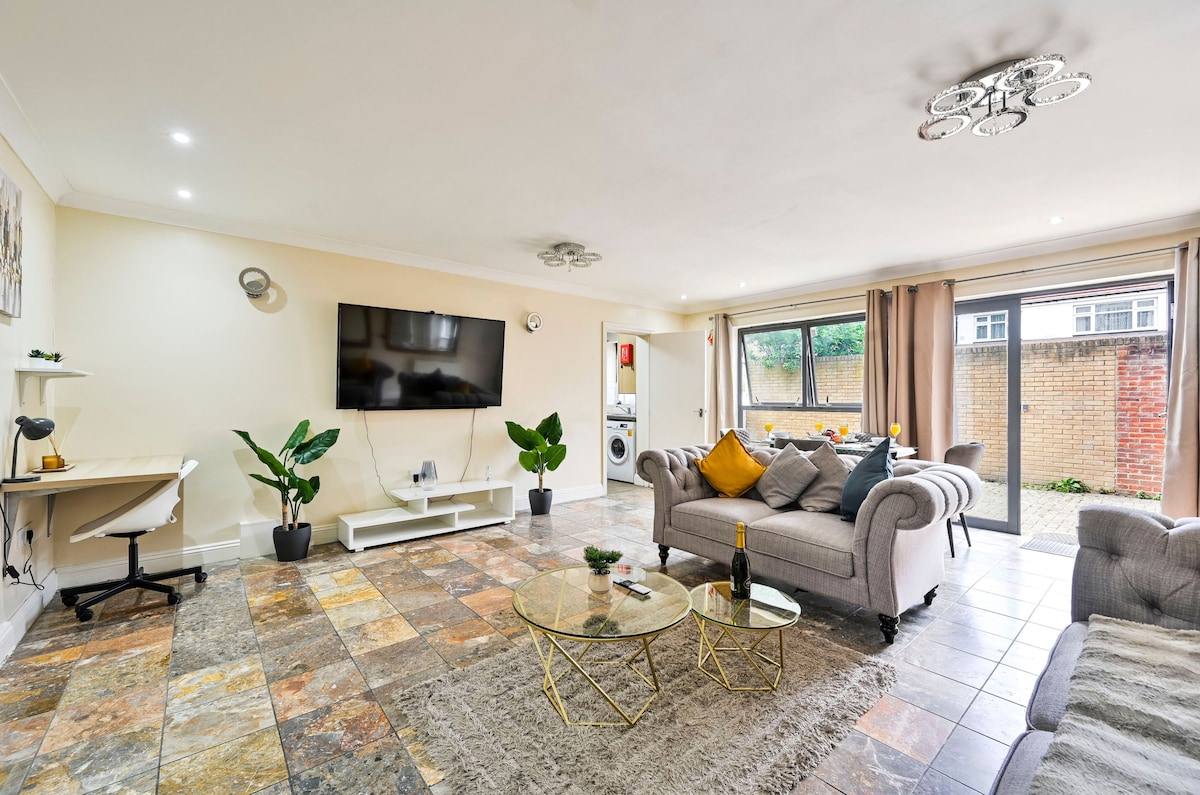 Stor modern lägenhet och trädgård 11 minuters promenad Tube