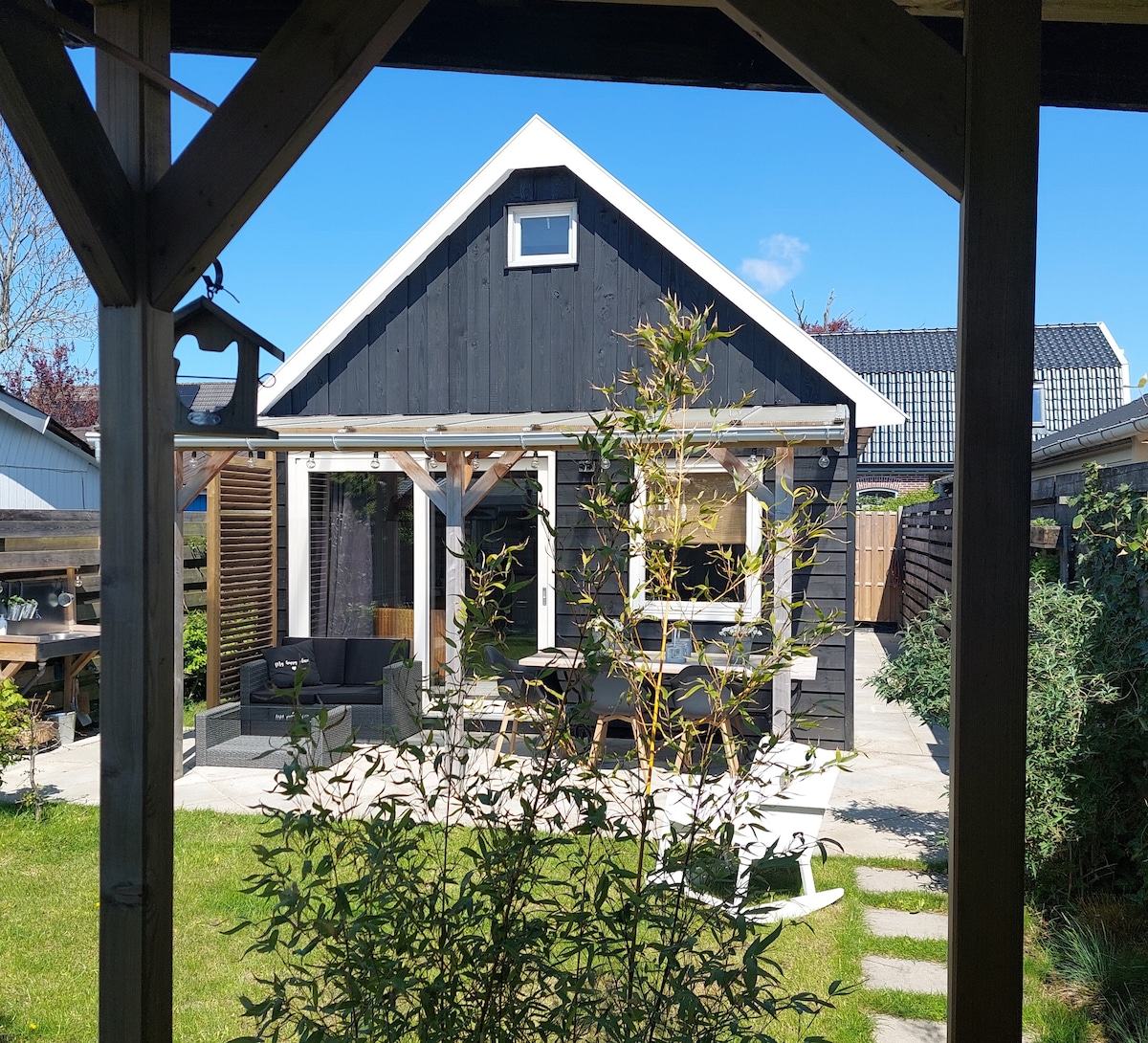 Bo över natten i ett vackert inrett boende inklusive privat infraröd bastu med dusch, fristående bad och luftkonditionering i centrum av Schagen. Du har hela gästhuset till ditt förfogande med utsikt över en rymlig trädgård där du kan sitta på terrassen och njuta av solen. Ultimat njutning, avkoppling och återhämtning är möjligt med oss! Läget är idealiskt för resor till Schagen ( 250 m) Beach (25 min cykling och 10 min bil) Alkmaar (25 min bil)