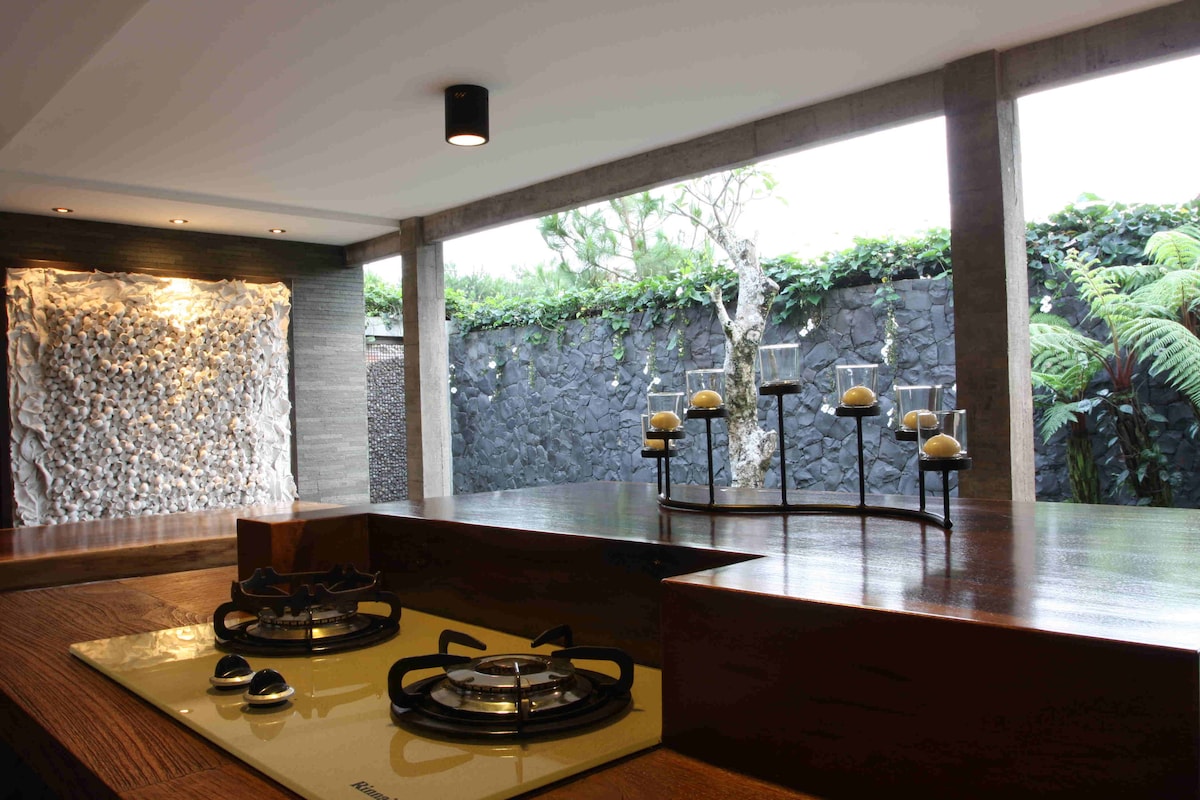 Den vackra och unika villan har sympatiskt omvandlats från en gammal kolada till modern modern modern styling, mysigt boende och grönt hem. Beläget mitt i en hel del turistplats som Tangkuban Perahu vulkan, Dusun Bambu, Naturlig varm källa Maribaya, Floating Market, etc. Villan ligger inbäddad på landsbygden med utsikt över öppna fält bortom, detta är indbegreppet av dagens land reträtt.