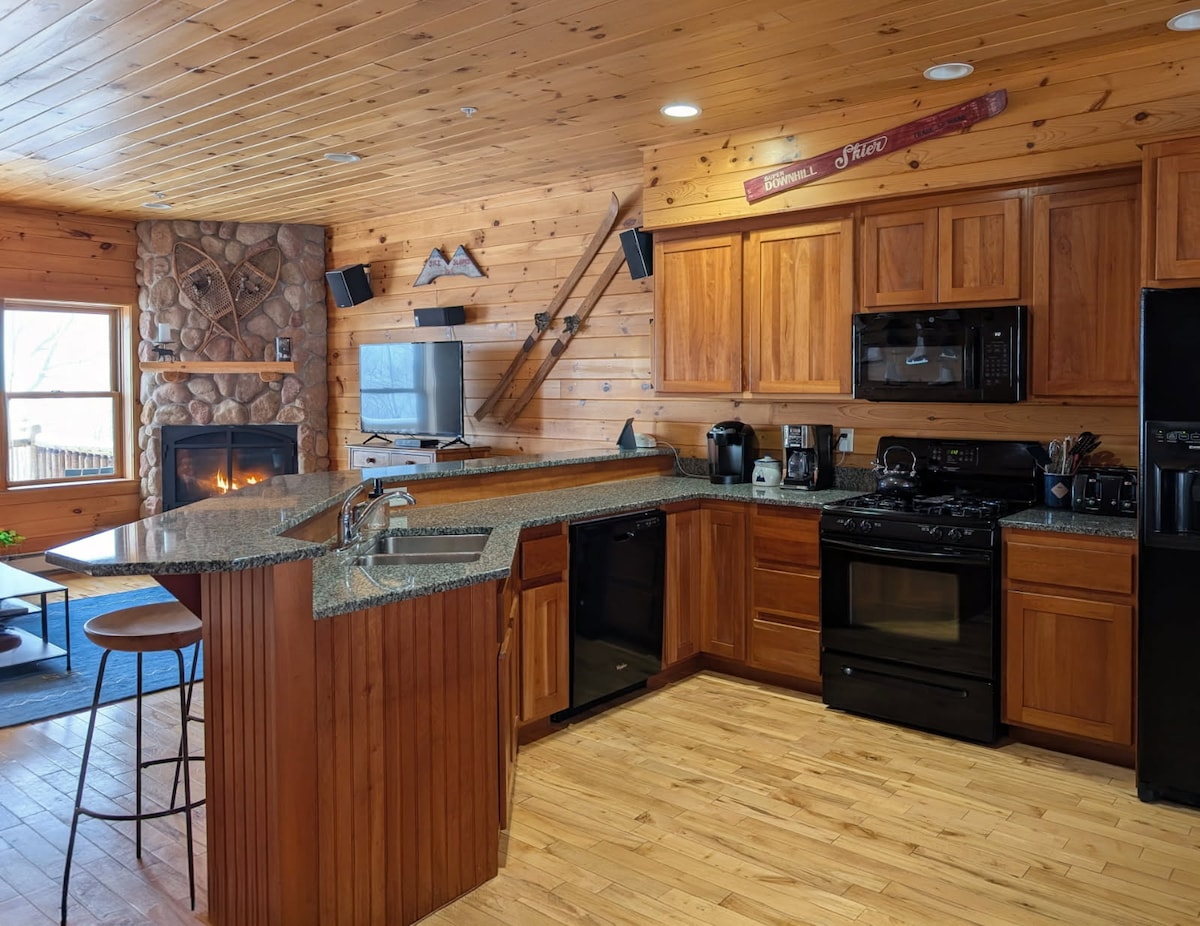 Rymligt Ski In-Ski Out 1BR med öppen spis och bubbelpool