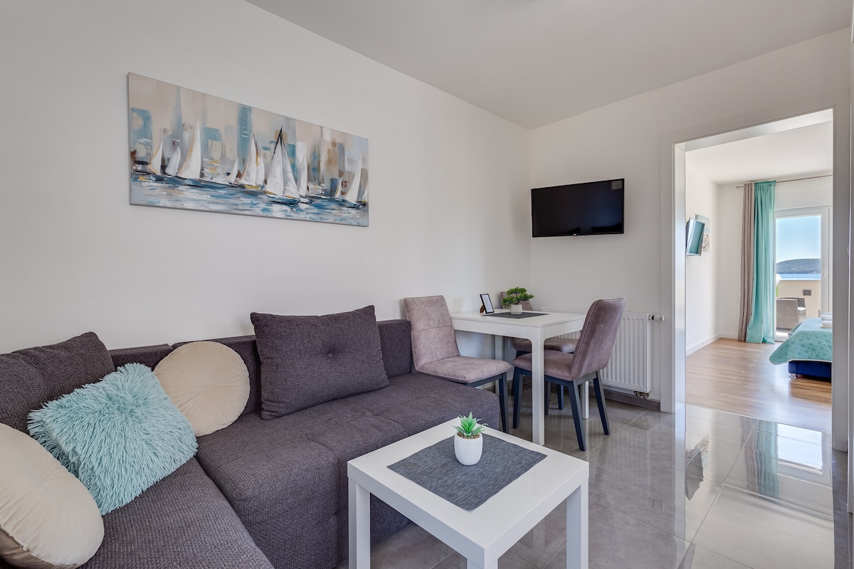 Denna moderna lägenhet i Sukošan är idealisk för par eller mindre familjer som letar efter en lugn semester längs Adriatiska kusten. Lägenheten ligger i en lugn del av Sukošan och erbjuder avskildhet, samtidigt som den ligger nära lokala restauranger, butiker och den berömda D-Marin Dalmacija marina och Dječji raj strand. Den historiska staden Zadar ligger bara 10 minuters bilresa bort, vilket gör det enkelt att utforska regionen. Boka ditt boende på Airbnb och koppla av från stadens liv och rörelse, buller, omgiven av grönska, frisk luft och havet.