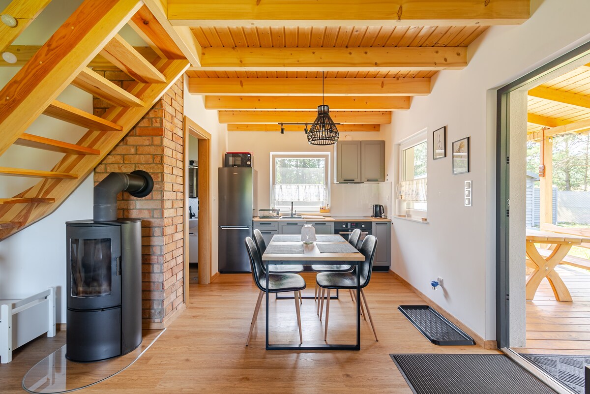 Domek w typie "cabin" na ogrodzonym, dużym i zadrzewionym ogrodzie. Prawie 1000 m2 zieleni sprawia, że jest tu pełna prywatność. Okolica jest spokojna. Trzy piękne duże jeziora w odległości 500-700 m Goście mogą liczyć na prawdziwą odskocznię od zgiełku, rozpalić w kominku, wsłuchać się w szum drzew, kumkanie żab i śpiew ptaków. Tutaj przyjedziesz złapać oddech w bezpiecznym miejscu na łonie przyrody, w sercu Pomorza Kaszubskiego.