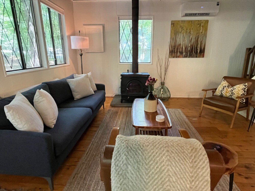 Vakna upp till utsikt över kullarna från denna skandinaviskt inspirerade stuga med träpaneler, katedralstak, skarpa möbler och betonggolv. Dela ett glas vin med en vän bredvid en elegant öppen spis och ett sofabord i ett elegant vardagsrum. Informera värden om du planerar att ta med en hund eftersom det finns en viktgräns på 15 pund. Maximalt antal gäster/besökare/personer som är tillåtna i boendet är 2. Ägaren bor i fastigheten och finns tillgänglig för allt gäster kan behöva.