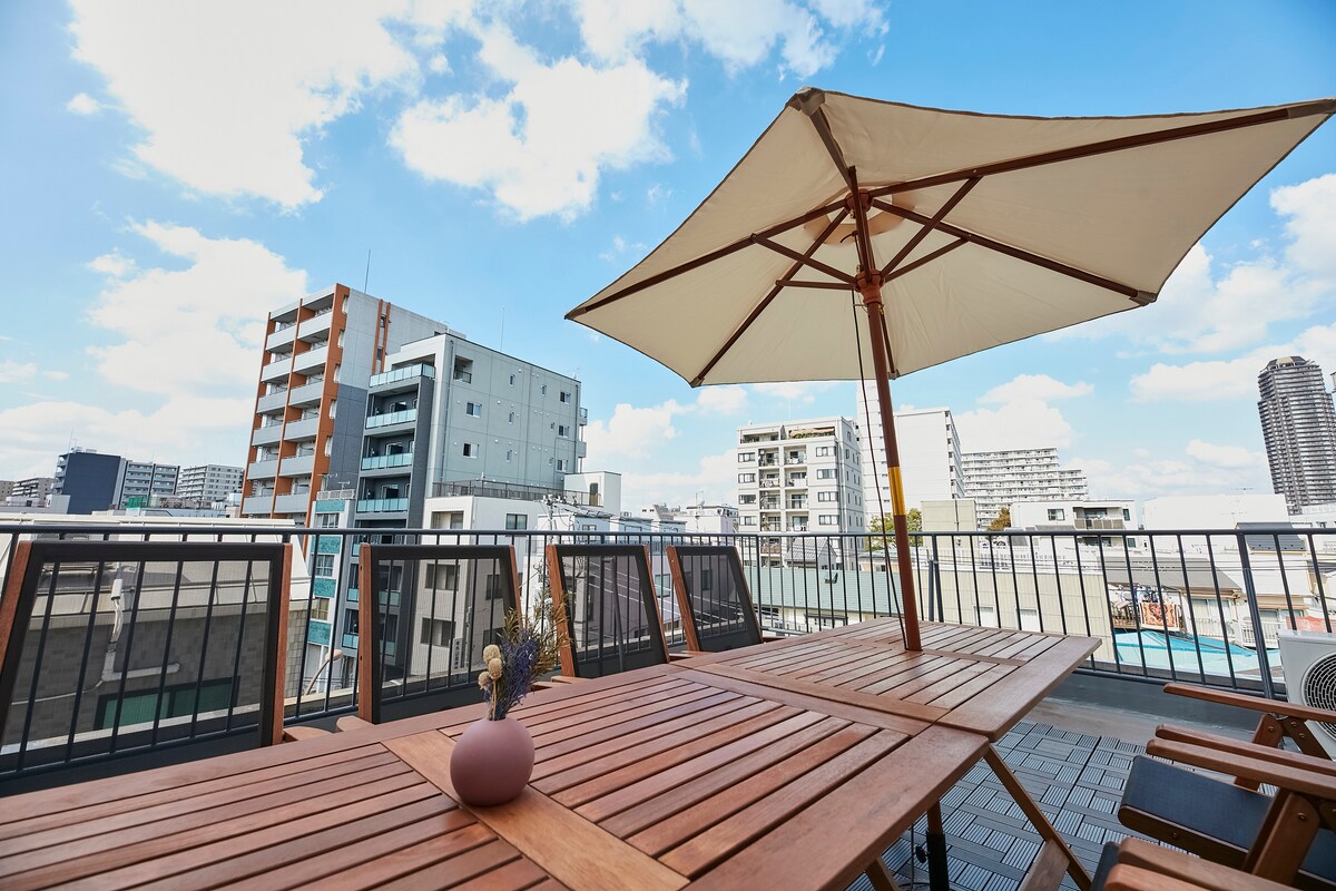 Detta boende är perfekt för att njuta av en medellång eller lång vistelse med familj och vänner. Det är ett lägenhetshotell som öppnade 2023 i ett lugnt bostadsområde nära stadens centrum. Det finns vatten, en park och en shintohelgedom i närheten. Det rymliga rummet på 35 m² är designat i japansk stil. Det finns en dubbelsäng och tre futoner, och upp till 5 vuxna kan bo här. (Spädbarn under 2 år som delar säng med föräldrarna bor gratis.) Det finns ett kompakt kök där du kan laga mat, en helautomatisk tvättmaskin och torktumlare, ett stort badrum och en separat toalett. Det finns också en Android-TV och gratis Wi-Fi, så det är en tillräcklig miljö för att tillbringa tid inomhus eller arbeta. Du kan också koppla av på taket som är öppet för gäster. Incheckningen är ett obemannat incheckningssystem som använder en surfplatta, så du behöver inte oroa dig för att komma sent på natten. Dörren styrs av ett toppmodernt touch-key-system. Det ligger 5 minuters promenad från utgången till närmaste station (Sumiyoshi station, Hanzomon linje, Toei Shinjuku linje) och det finns en stormarknad i närheten. Vänligen koppla av med din familj på detta lugna boende.