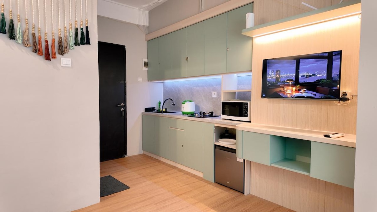 En mysig 2BR lägenhet ligger vid Braga Citywalk. Precis vid det historiska Jalan Braga mitt i Bandung. Vad vi tillhandahåller: - Elektrisk spis - Matlagningsredskap och stekpannor och kastrull - Ät redskap - Vattendispenser med vatten gallon - Schampo och tvål - Handdukar - Tvättmaskin