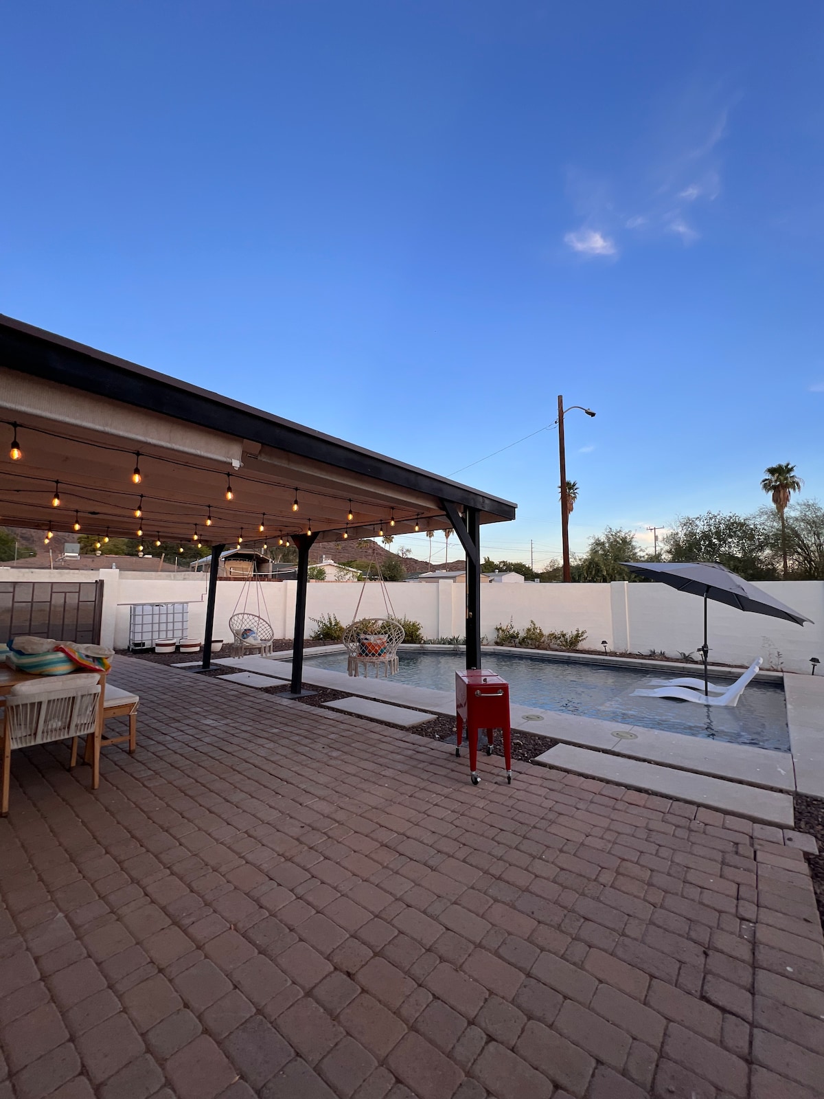 🏊 Year-round relaxation in heated saltwater pool (gentle on skin/eyes) 🔥 Cozy up by 4 outdoor gas fire features 🍖 Grill for groups at outdoor BBQ/kitchen 🛋️ Warm ambiance from indoor gas fireplace 🍳 Fully stocked kitchen with everything needed ✨ Tasteful design with high-end finishes/fixtures So much to enjoy, you won't want to leave! But if you do: 20 min from Sky Harbor, Scottsdale & top golf like Lookout Mountain. Resort-like feel in quiet N Central Phoenix – ideal family / golf retreat