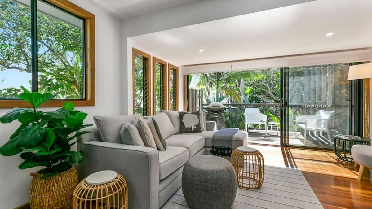 BO VID STRANDEN I NOOSA. En regional återställning som ingen annan på Sunrise Beach. Vakna upp till en ny soluppgång varje morgon från ditt vardagsrum, över havet, i en ljus och luftig stranddyna med din egen gräsbevuxna kulle som verkligen är unik. Upplev hur det är att leva så löjligt nära de östra stränderna, inuti det avslappnade Noosa-distriktet. Sov till vågorna som kraschar varje natt. Sitt på "knollen", rulla ut yogamattorna + titta på den fantastiska solnedgången i all sin härlighet.