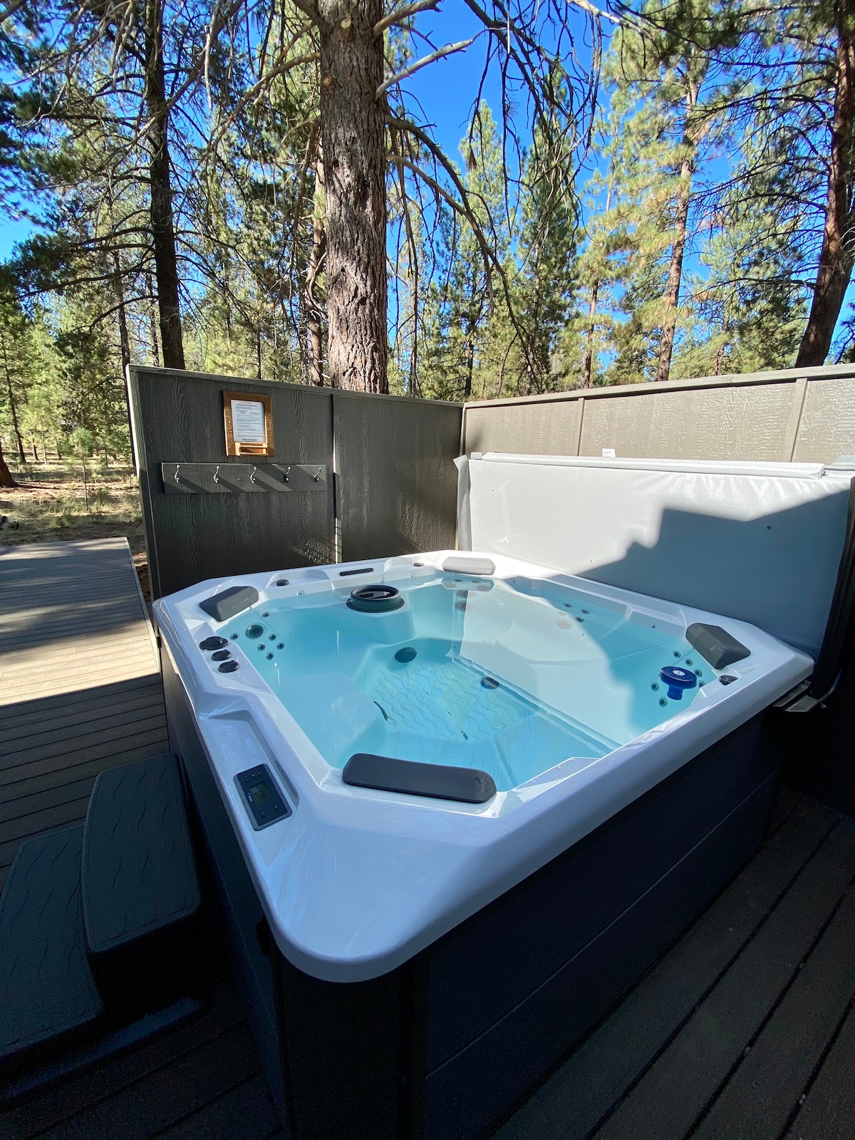 **NEWLY INSTALLED! ** Spa & sauna grotto is all ready for your romantic Bend getaway! This quiet, wooded, centrally-located, standalone bungalow is steps from the Deschutes River trail, easy walking distance to Mill Dist. and Hayden Amphitheater. It boasts a comfy king bed w/premium down bedding and pillows, dedicated free parking (incl. extra cars or small RV), outdoor dining and patio area, washer/dryer, and kitchen fully stocked with everything you need for fun and relaxation for all seasons!