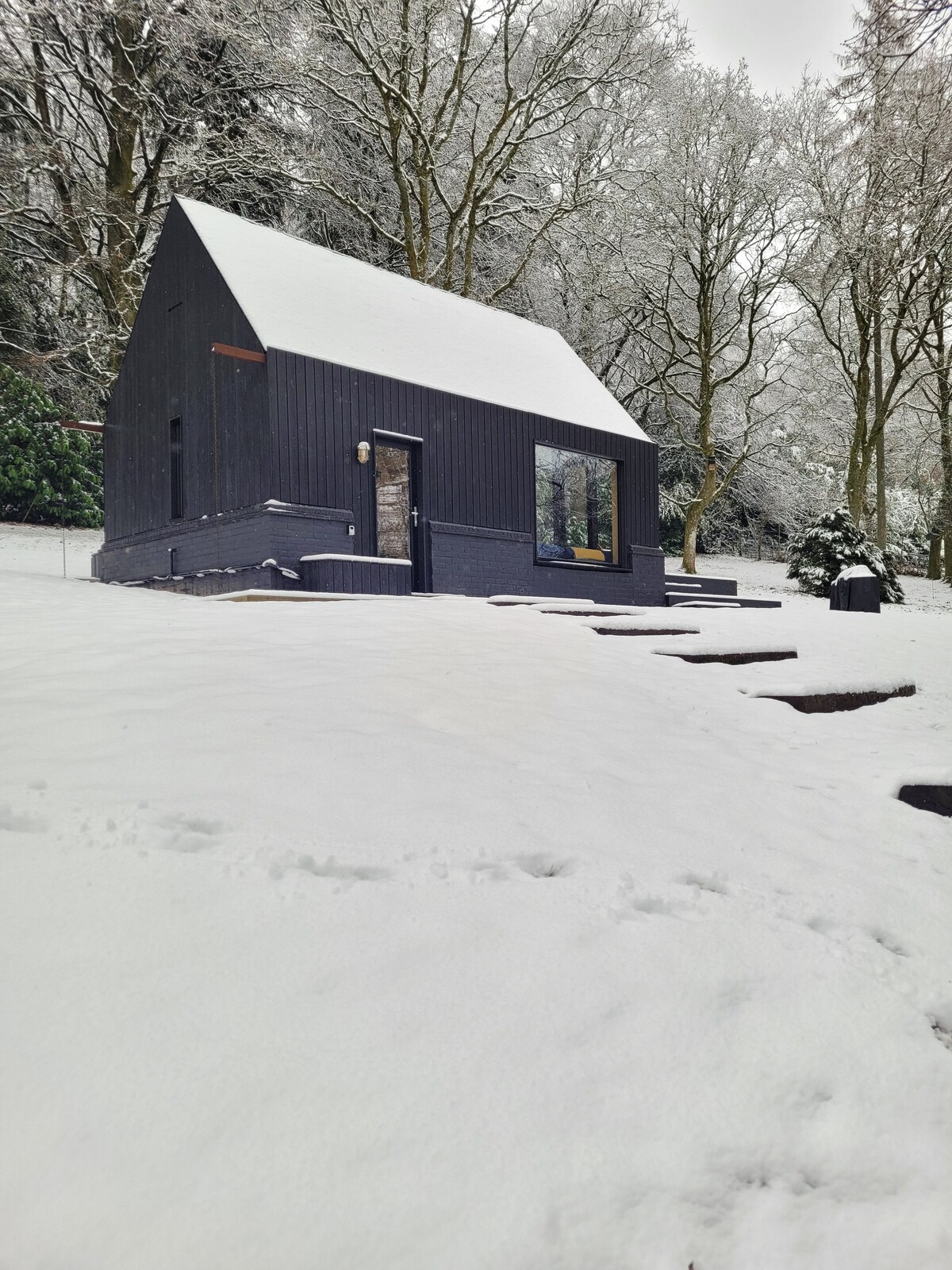 Fly till vårt avskilda, unika lilla hem inbäddat i ett privat skogsområde, komplett med ett utomhusbadkar med utsikt över fridfulla fält. Njut av ljust, öppet boende med vedeldad spis, projektor och lyxig regndusch. Perfekt beläget inom gångavstånd från Weyhill och den charmiga marknadsstaden Haslemere med sin tågstation. Bara en kort bilresa från A3, Goodwood, Devil's Punchbowl och otaliga vandrings- och cykelleder. En lugn tillflyktsort väntar!