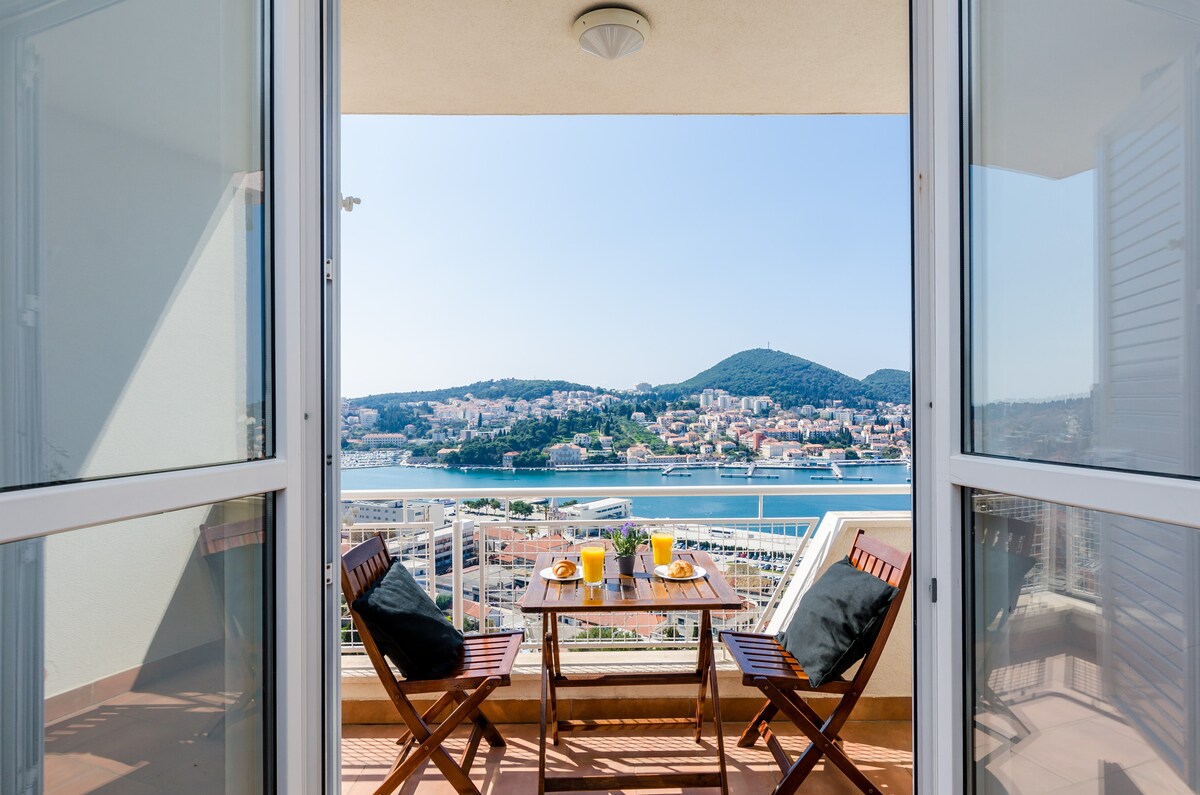 Vår härliga lägenhet har 60 kvadratmeter, med en enorm 90 kvadratmeter terrass med utsikt över Gruž bay och Lapad halvön. Den ligger på en lugn gata med gratis parkering tillgänglig på plats. Lägenheten är väl ansluten till andra delar av staden. Hamnen ligger 5 minuter bort nerför backen, och erbjuder transport och dagliga båtturer till vackra närliggande öar. Gamla stan och närmaste strand ligger antingen 10 minuters bilresa eller 25 minuters promenad.