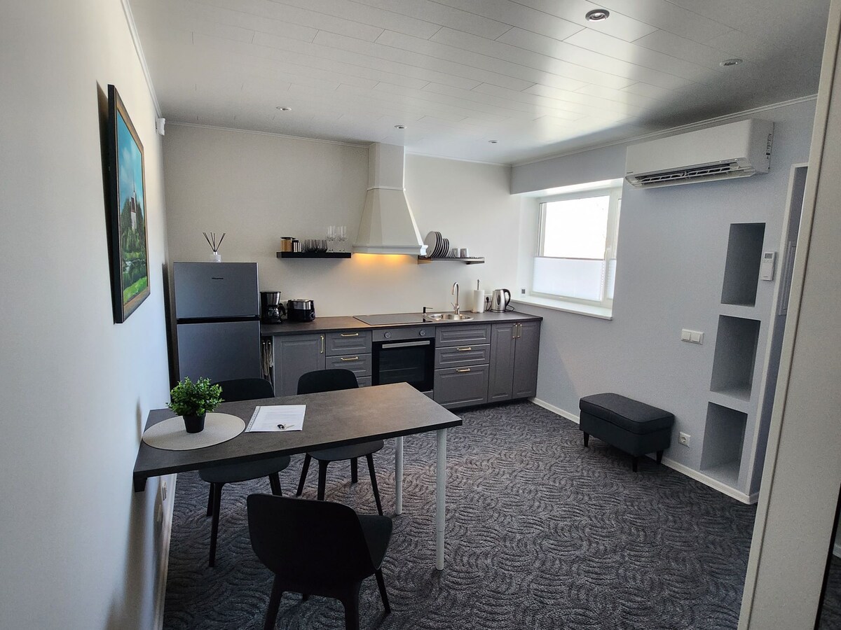 Din charmiga retro-lägenhet i Viljandis bästa läge, precis vid sjön och bara en kort promenad från alla stadens främsta attraktioner. Du är bara några steg från Viljandi-stranden, slottsbackarna och Ugala-teatern. Du kommer att njuta av din lyxiga sömn på den högkvalitativa Kamjo-sängen för ultimat komfort. Denna lägenhet med ett sovrum och imponerande högt i tak på 3,5 meter erbjuder alla moderna bekvämligheter. Perfekt för avkoppling eller minneskapande med nära och kära – du känner dig verkligen som hemma här.