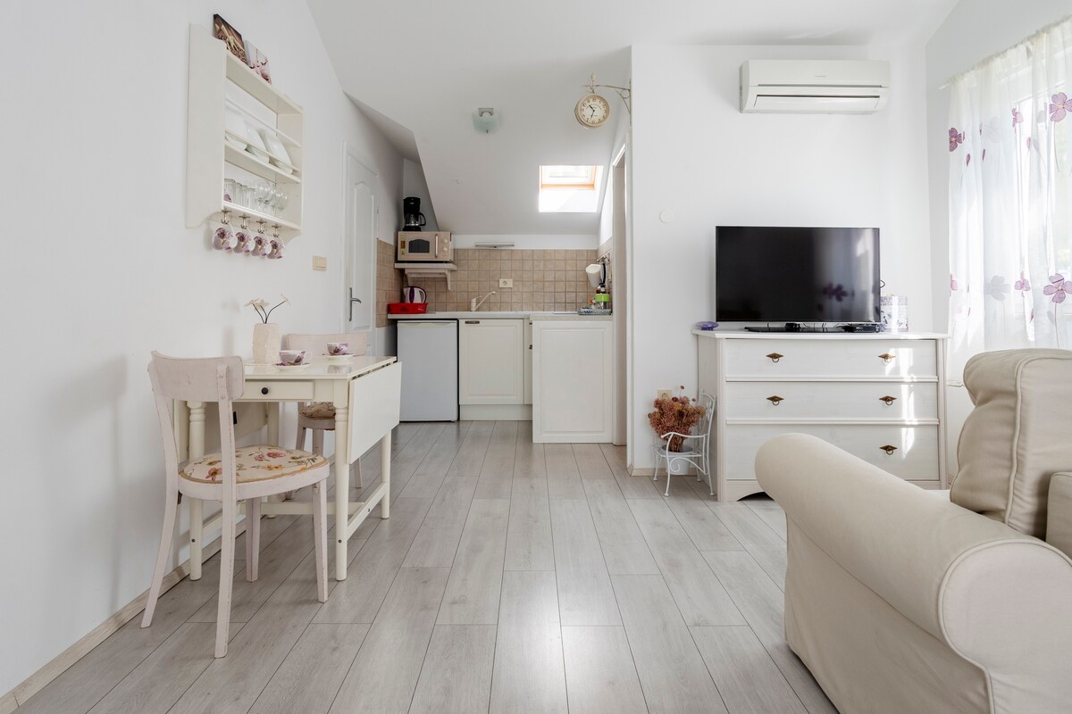 Detta är det perfekta stället att koppla av. Det här namnet är inte av en slump och upplevelsen lever upp till det. Studion ligger precis vid stranden med en fantastisk havsutsikt där du kan njuta av din unika upplevelse av att sova nära den dalmatiska kusten till fullo