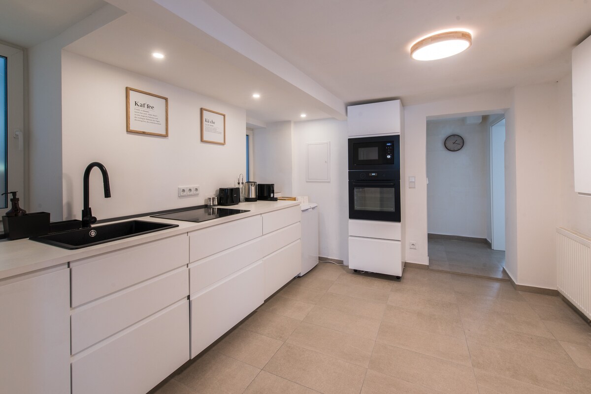 Välkommen till MOREHOME Apartments Den 3-rumslägenhet på bottenvåningen i ett lugnt område i hjärtat av Mindelheim rymmer upp till 5 personer ->stor terrass i söderläge med mysig trädgårdslounge ->2 sovrum med boxspring-sängar (180×200 och 160×200) –>86 tums smart-TV, TeufelCinebar Netflix WLAN –>fullt utrustat kök med kyl/frys, BORA-häll, ugn och diskmaskin ->bekväm 5m soffa, sovplats för 5:e person ->Switch 2 med Mario Kart och ytterligare spel🎮 Tillräckligt med gratis parkeringsplatser på plats