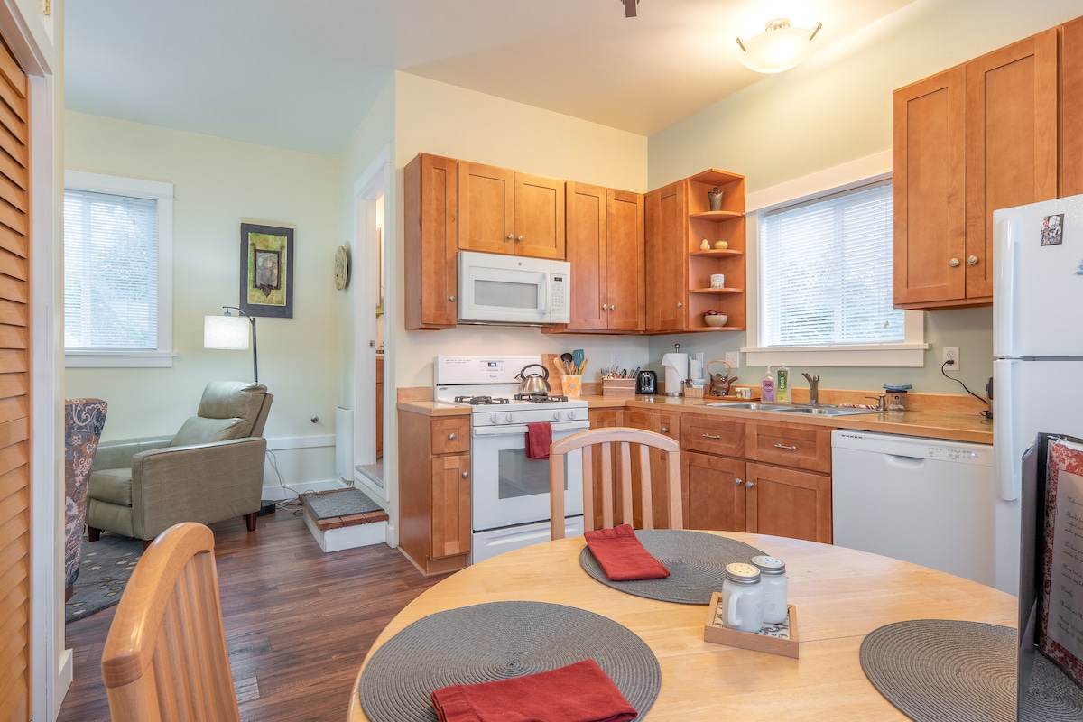 Grannskapet Overlook är en av Portlands dolda pärlor. Tyst, trädkantad, men bara några minuter från all action Portland tjänar upp. Gå eller rida till måltider, bryggeripubar eller shopping i Mississippi- och Williams-distrikten. Hoppa på ett tåg (tre kvarter bort) till alla kvarter. Eller, för att varva ner, gå till Overlook eller Mocks Crest parker för svepande utsikt över centrala Portland, Forest Park och Willamette River. Läs vidare för att se om studiolägenhetens lägre tak är rätt för dig.