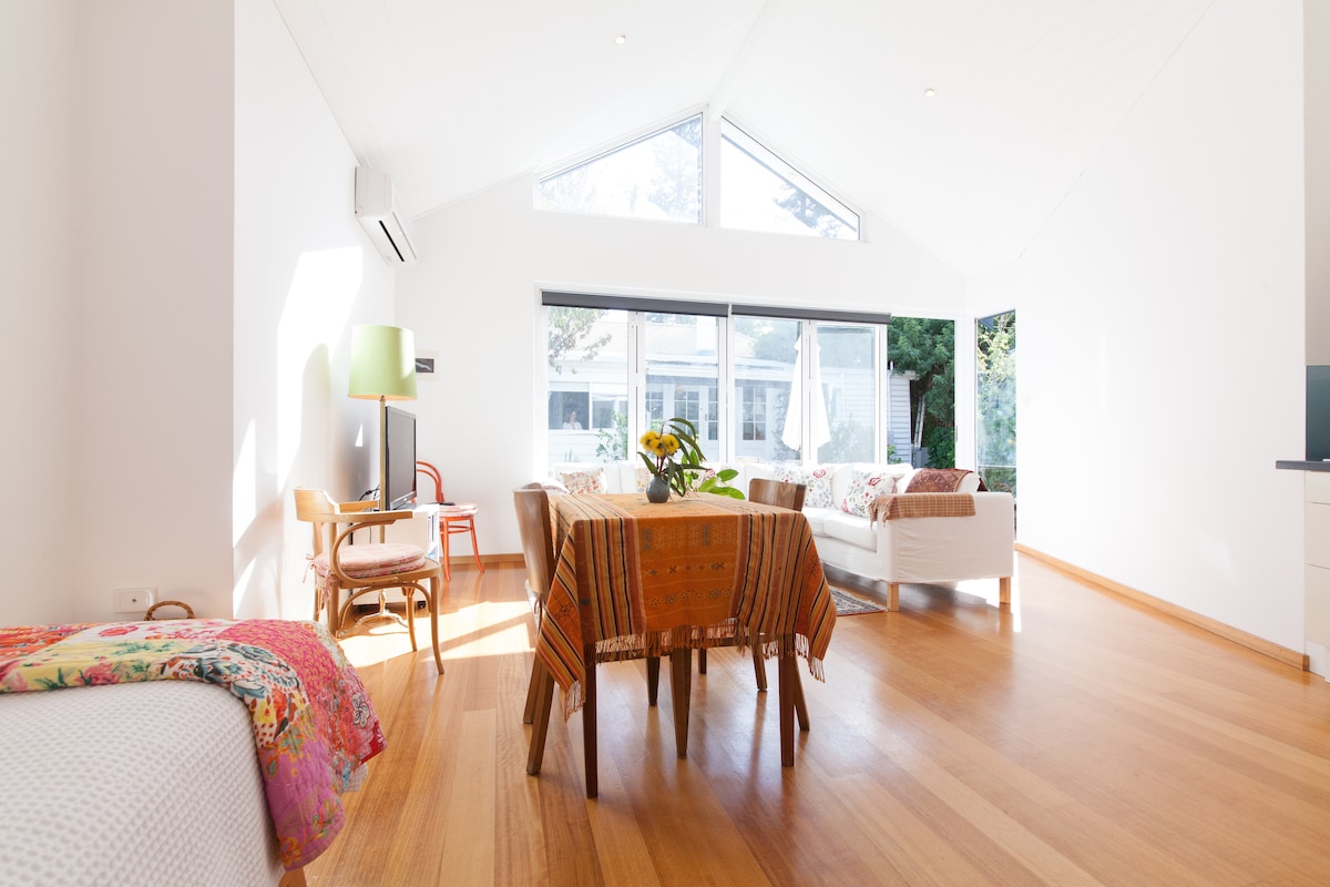 Solig, ljus helt fristående studiolägenhet belägen i den skuggiga stugträdgården i ett historiskt Mount Lawley hem. Det är perfekt för ett par som letar efter en privat och fridfull romantisk semester. Här finns: Helt fristående studio. Privat tillgång till bakre körfält med självincheckning tillgänglig. Modernt pentry och badrum. Bekväm dubbelsäng med kuddar. WiFi och arbetsyta. Kort promenad till vackra Hyde Park, trendiga Mount Lawley och North Perth kaféremsor, Astor Theatre, Northbridge nattliv och Perth City.