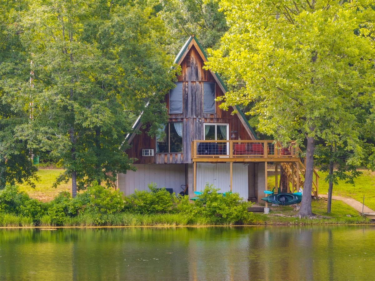 A-ramshus vid sjön nära Spring River