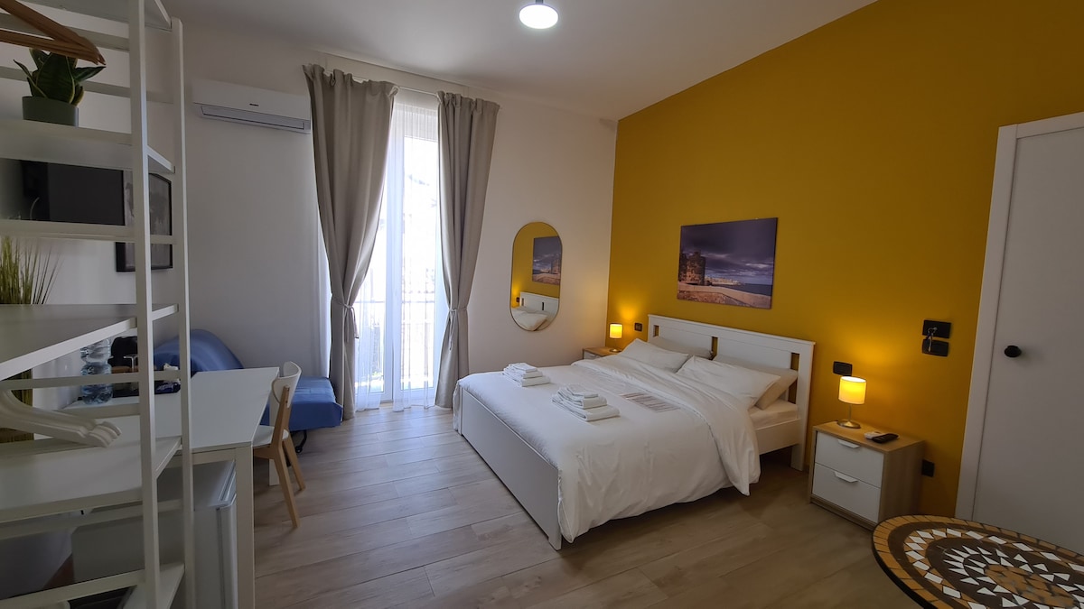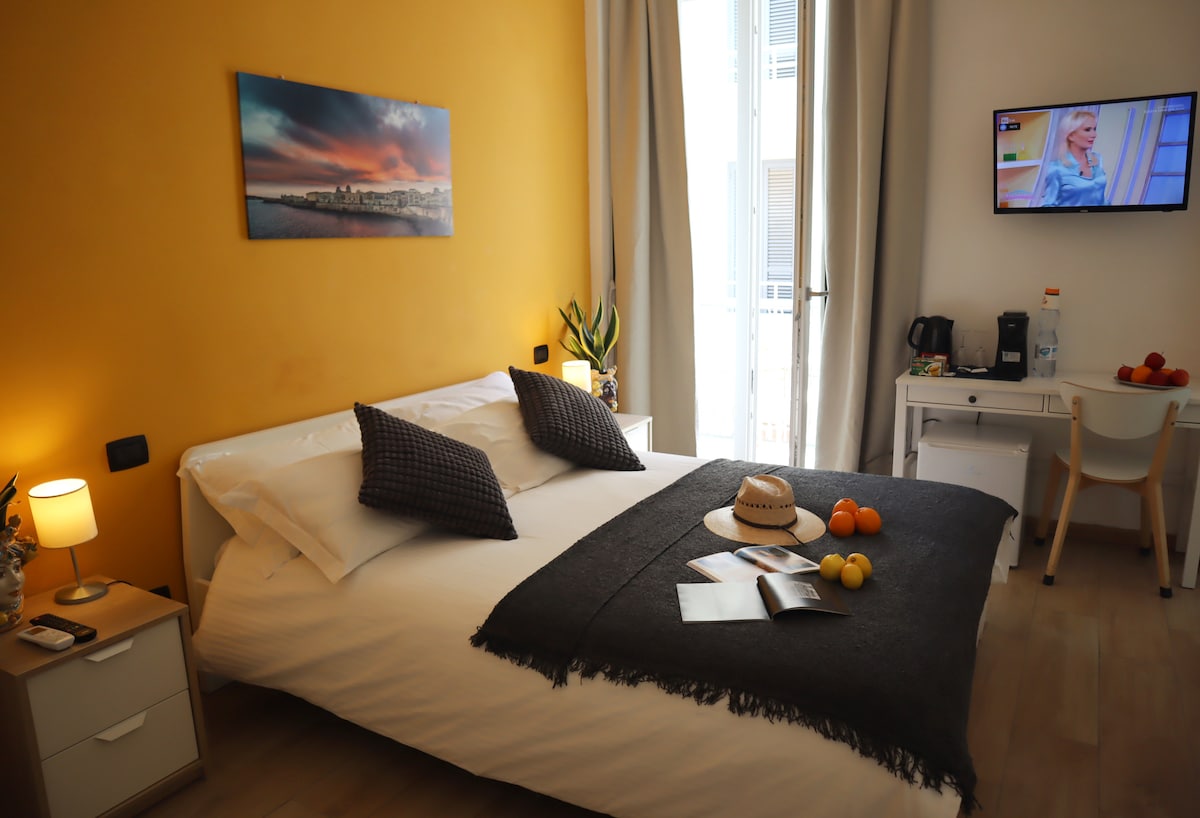 Gästhuset Raudino Rooms - Camera Ortigia i Siracusa är det perfekta boendet för en stressfri semester med dina nära och kära. Den 16 m² stora fastigheten består av ett vardagsrum, 1 sovrum och 1 badrum och rymmer därför 2 personer. Ytterligare bekvämligheter inkluderar höghastighets Wi-Fi (lämpligt för videosamtal), en smart-TV med streamingtjänster samt luftkonditionering. En barnsäng är också möjlig. Byggnaden där boendet ligger har hiss.