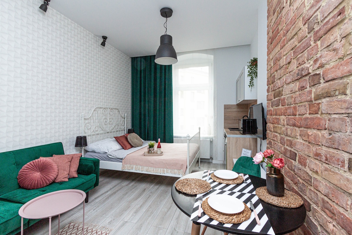 Helt ny (beställd i februari 2020), rymlig (42 m2) och modern lägenhet för 4 personer. Tidigare lyxig urban bostad i Stettiner aristokrati därför arkitektur, som kombinerar klassikern i en 100 år gammal byggnad med modernitet, inredning och färger i lägenheten, hänvisar till bostadsklimatet från början av 1800- och 1900-talet.