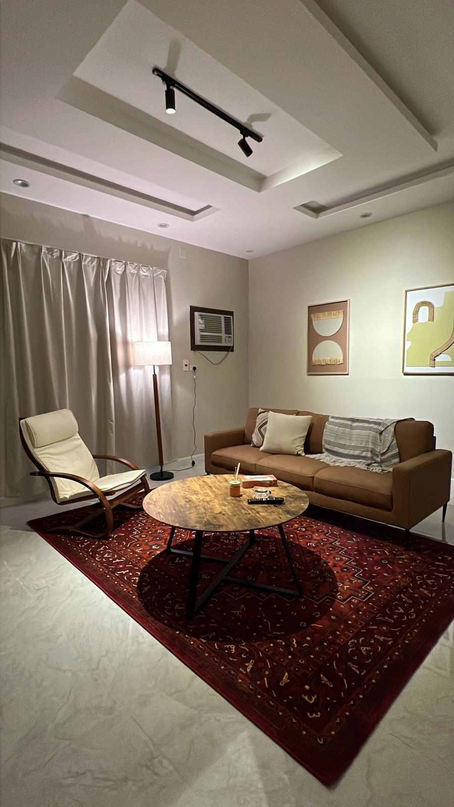Modern & mysig lägenhet i hjärtat av Tabuk Koppla av i denna eleganta 1-rumslägenhet. Njut av ett rymligt vardagsrum och ett bekvämt sovrum med sängkläder av hotellkvalitet. Koppla av och slappna av i det moderna vardagsrummet. Beläget bara några steg från trendiga kaféer, restauranger och attraktioner. Bekvämligheter inkluderar höghastighets-wifi, en arbetsyta, kaffehörna och gratis parkering. Din perfekta resa väntar - boka nu!