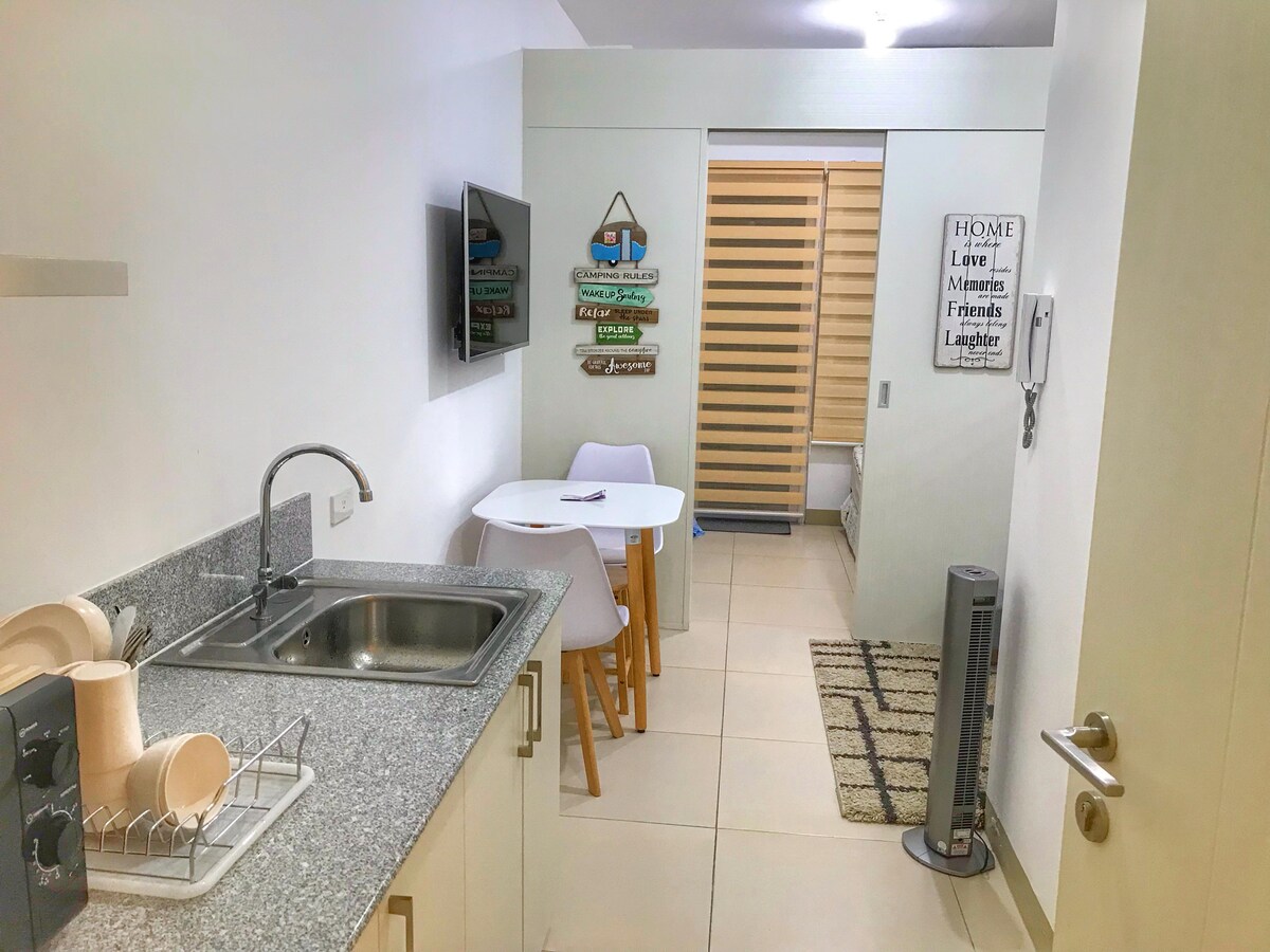 Vår enhet ligger i SMDC Wind Residences Tower 1, precis vid Aguinaldo Highway, vilket ger bekväm tillgång till allt du behöver. Cirka 35 kvadratmeter (400 kvadratfot) med en funktionell öppen planlösning utformad för komfort och avkoppling. Det är utrustat med: ✔ En dubbelsäng med kingsize-säng ✔ Extra madrass för golvet ✔ Grundläggande köksredskap och små köksapparater ✔ Snabbt och pålitligt PLDT FIBR-wifi ⚠️ Observera: Det finns INGEN källarparkering tillgänglig. Betald parkering finns tillgänglig inom fastigheten.