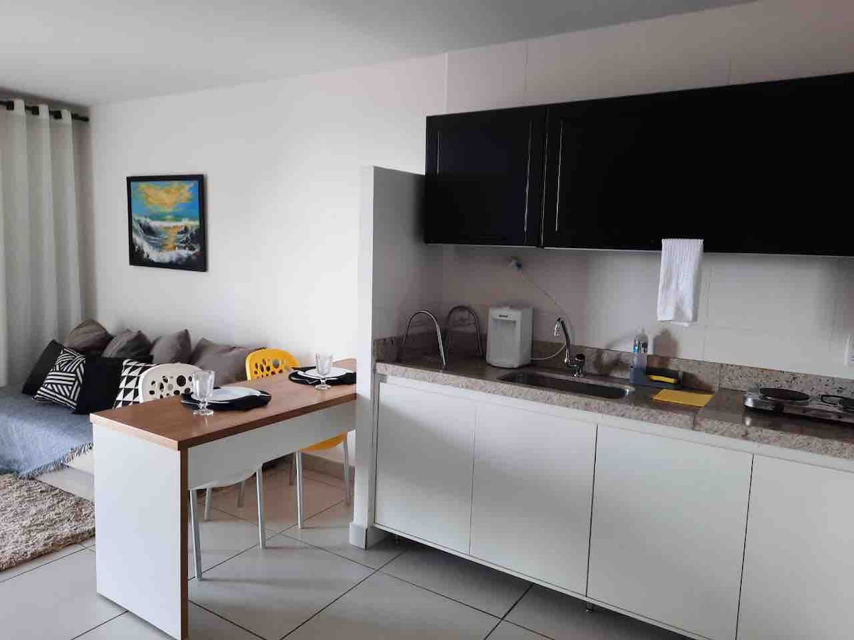 Charmig kitnet väl uppdelad i två miljöer. Rummet har en bekväm Queen Size-säng, nya sängkläder och handdukar för bad och ansikte för gästerna. Köket har kastruller, köksredskap, porslin och bestick för tre personer. Lägenheten har också luftkonditionering, kylskåp med frys, mikrovågsugn, Wi-Fi och kabel-TV och bäddsoffa i vardagsrummet. Lägenheten ligger bara 10 minuter från flygplatsen och Brasílias centrum och bredvid ett köpcentrum och en busstation