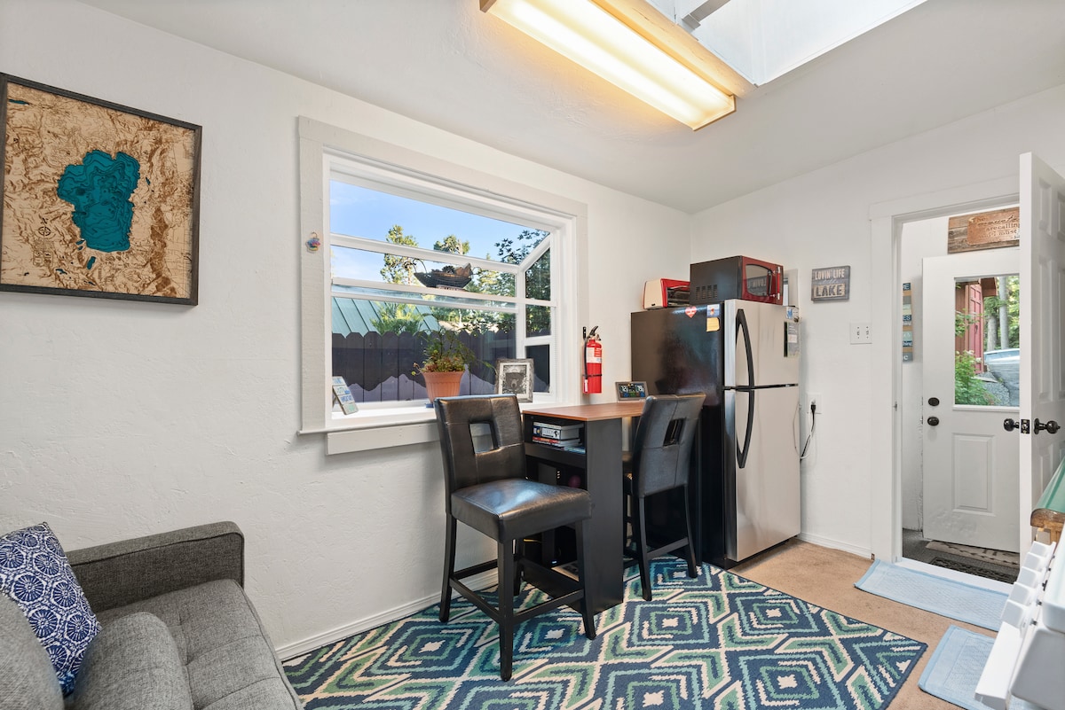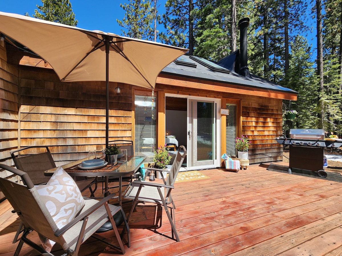 Precis uppför kullen från centrala Tahoe City ligger ditt lilla äventyrsnav! Denna lilla stuga erbjuder ett entréutrymme och soligt kök/vardagsrum med ett trädgårdsfönster och takfönster. Utrustad med en dubbelsäng och bekväm soffa finns det gott om utrymme att koppla av efter en stor dag i Tahoe. Under sommaren kan du njuta av måltider eller koppla av ute på din privata altan med skuggträdgård. Under vintern kan du åka längdskidor bakom huset (om förhållandena tillåter). Endast 8 miles från (Palisades) Alpine och Squaw.