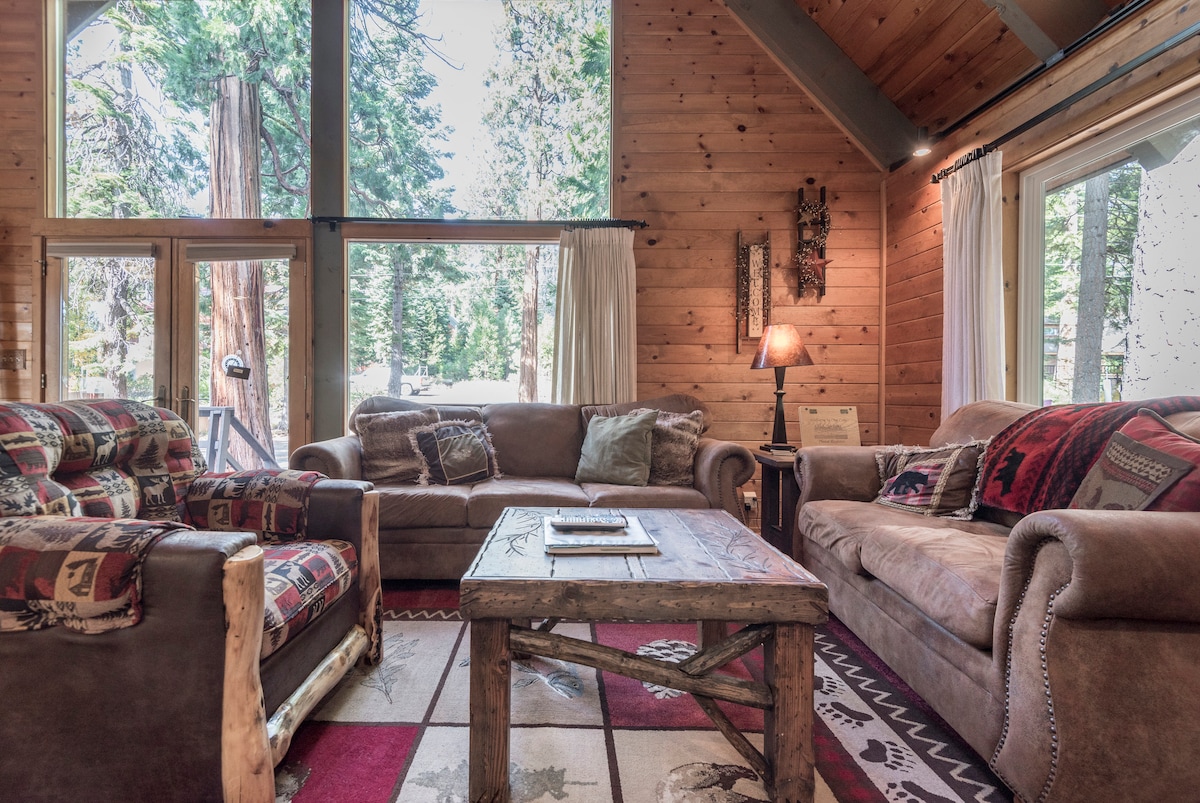 Beläget i lugn skogsmiljö inom gångavstånd till populära vandrings- och längdskidspår. Minuter från Northstar Ski Resort, Lake Tahoe stränder, båtliv, golf, parker och flera skidområden i världsklass. Detta vackra boende har 4 sovrum, 2 badrum med ett stort garage för 2 bilar, stor inhägnad bakgård och överdimensionerat soldäck. Njut av avskildhet och integritet utan att förlora plats. Med 7 sängar och tillräckligt med utrymme för 10 kommer detta att vara din perfekta Tahoe-semester under alla årstider!