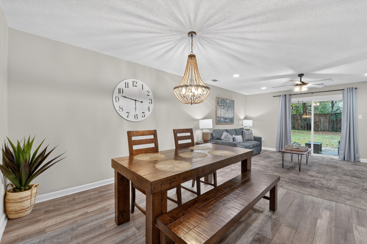*Fler bilder dagligen! Ha kul med hela familjen i ditt eleganta, enplanshus med pool! Detta är det perfekta navet för din vistelse i Savannah - nå Historic Downtown och Tybee Island på ca. 10 minuter! Höjdpunkter: - Ej uppvärmd pool - Plashpad för spädbarn - Enplansboende utan trappor -4 sovrum -2 badrum -14"madrasser i minnesskum - Centralt beläget - Studio McGee dekor - Pingis, arkader, dart - Parkering för 4 bilar Stanna här - du kommer inte att vilja åka!