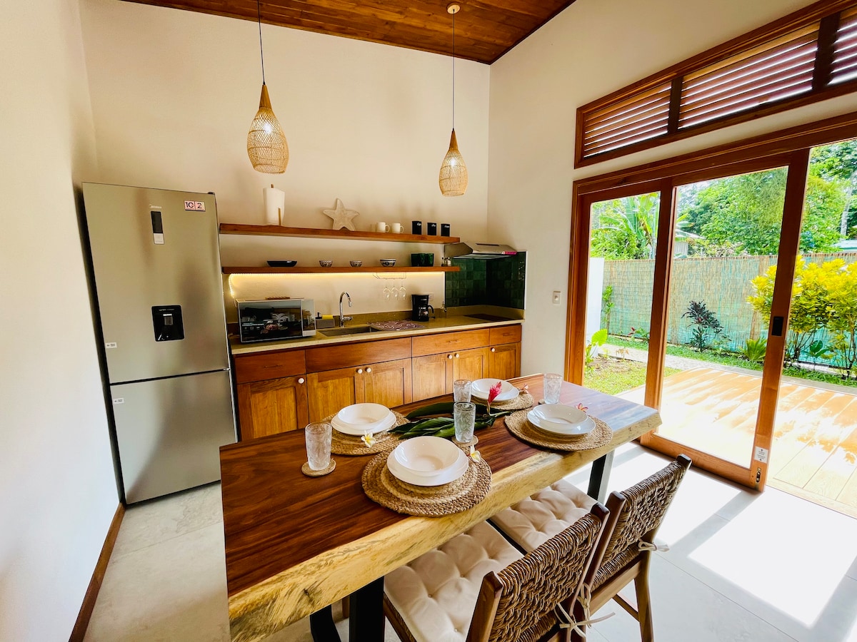Lyssna på fågelsång och de milda ljuden av djungeln i ditt karibiska semesterboende, bara några steg från den mjuka sanden i Playa Negra. Denna mysiga reträtt har två sovrum, två badrum, ett fullt utrustat kök och en rymlig, vackert utformad veranda. Njut av höghastighetsfiberinternet och säker parkering inom en inhägnad fastighet. Omgiven av en tropisk trädgård, upplev den autentiska andan i Costa Rica på det mest magiska sättet.