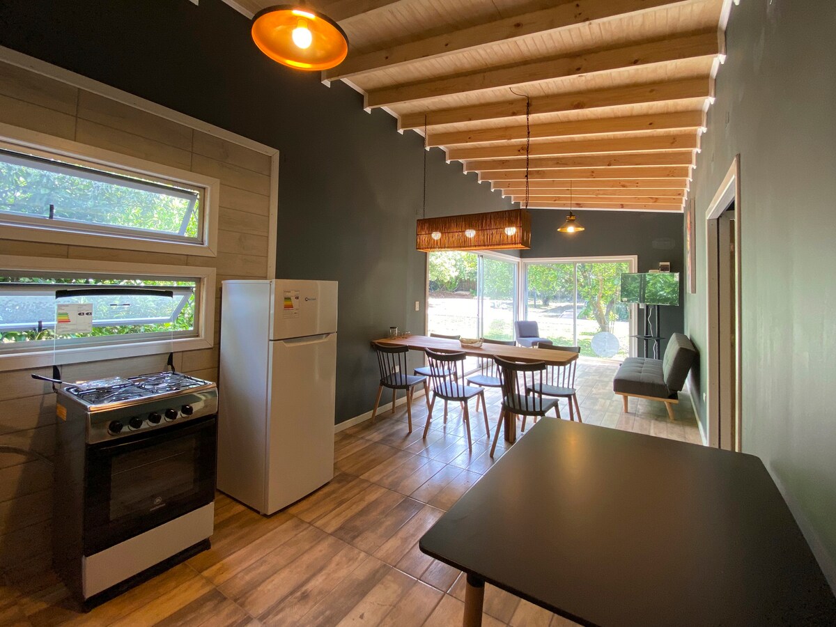 Mysig stuga på tomten på stranden av Lago Colbún. Utrustad för 6 personer, med 2 sovrum och 1 badrum, kök och quincho för grillar. Pool finns på sommaren. Sovplats 1: - Dubbelrum Queen Sovplats 2: - Stuga 1 sittplats - Säng 1 och 1/2 sittplatser Futon i vardagsrummet Sänglinne och handdukar för 6. Amerikanskt kök utrustat med matsal, bestick, porslin och köksredskap för 6 personer. Grytor, pannor, korkskruv, brödrost och juicemaskin ingår. Router med signal och Smart-TV.
