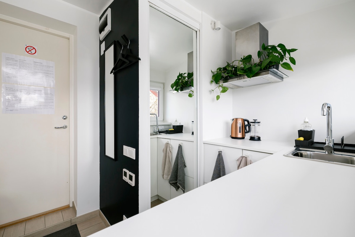 Bo i en av de minsta lägenheterna i Tallinn och njut av minimalismen i denna moderna, ljusa 6 m2 lägenhet! Gratis parkering utan för huset + elbil (10 euro per användning). Kollektivtrafik finns i närheten, buss-/vagnshållplats ligger 350 meter bort. Närmaste mataffär ligger 350 meter bort och närmaste köpcentrum ligger 1,3 km bort (Kristiine Keskus). Tallinns gamla stad ligger ca. 3 km bort.